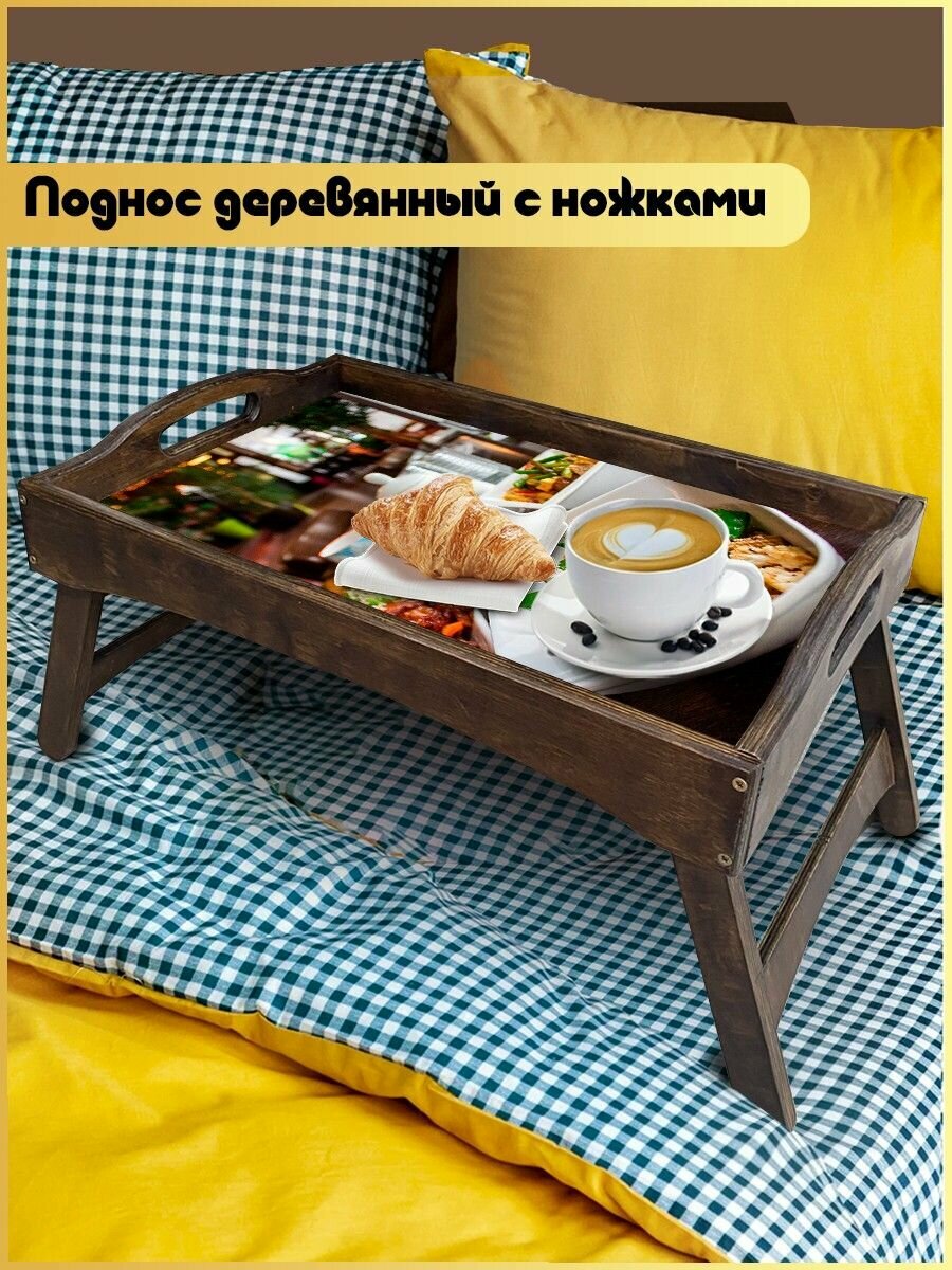 Деревянный поднос со складными ножками для приятного завтрака (обеда и ужина) прямо в постели.