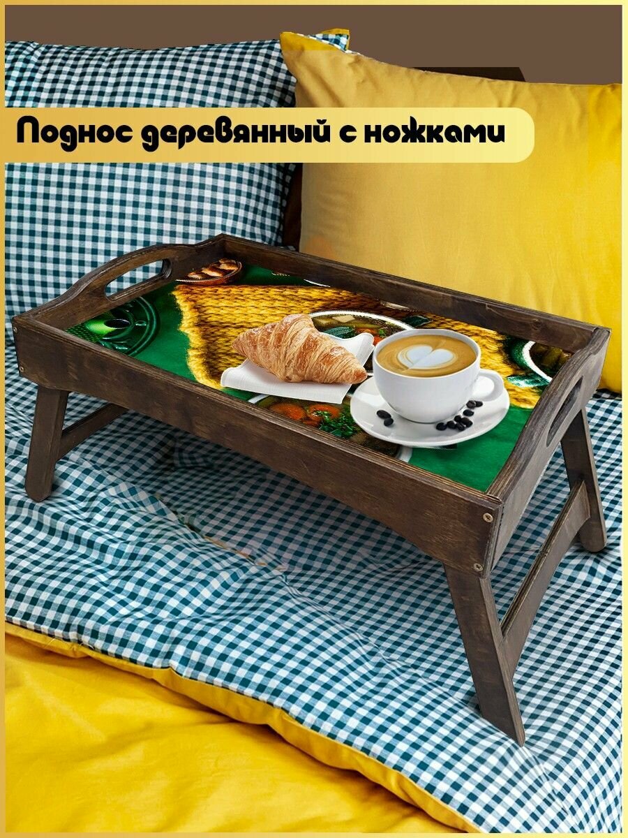 Деревянный поднос со складными ножками для приятного завтрака (обеда и ужина) прямо в постели.