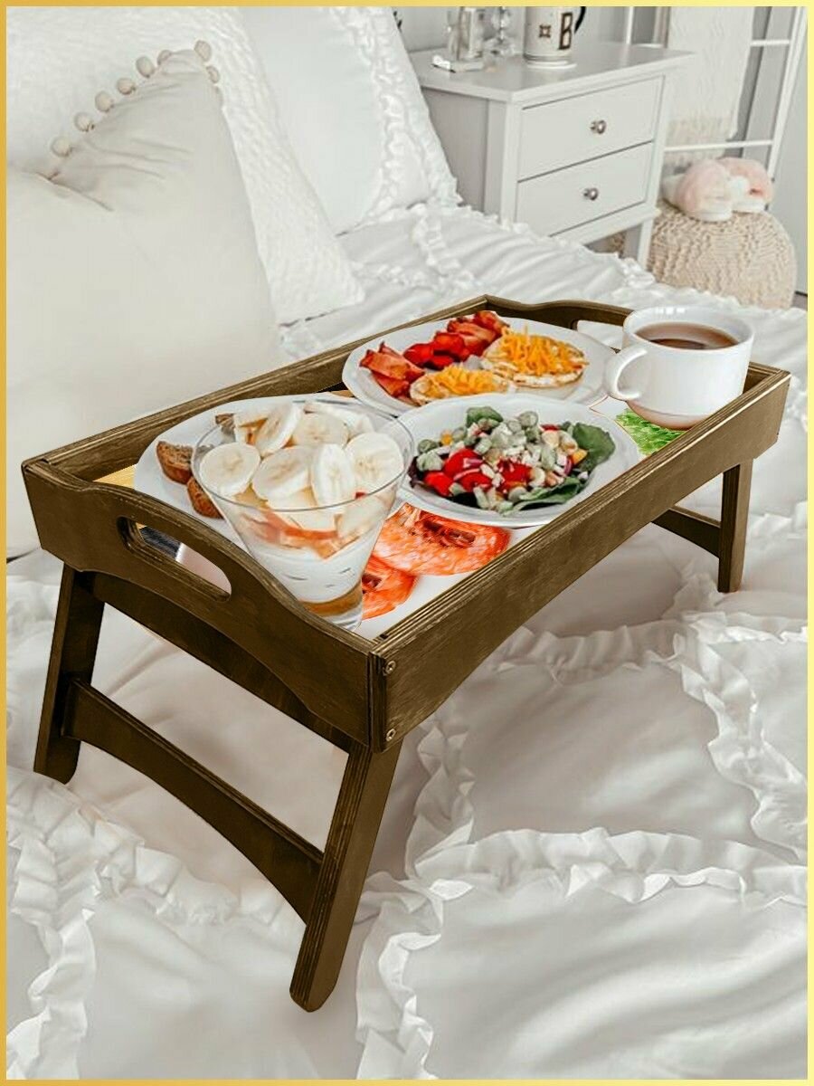 Деревянный поднос со складными ножками для приятного завтрака (обеда и ужина) прямо в постели.