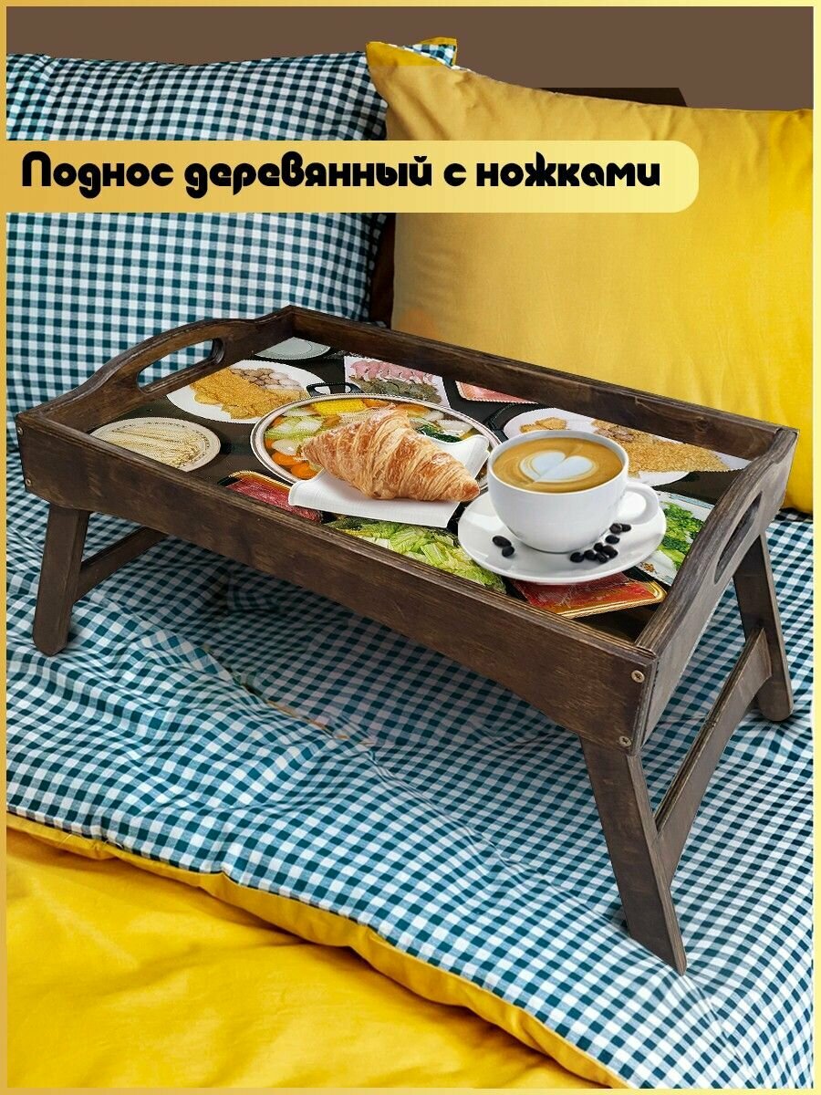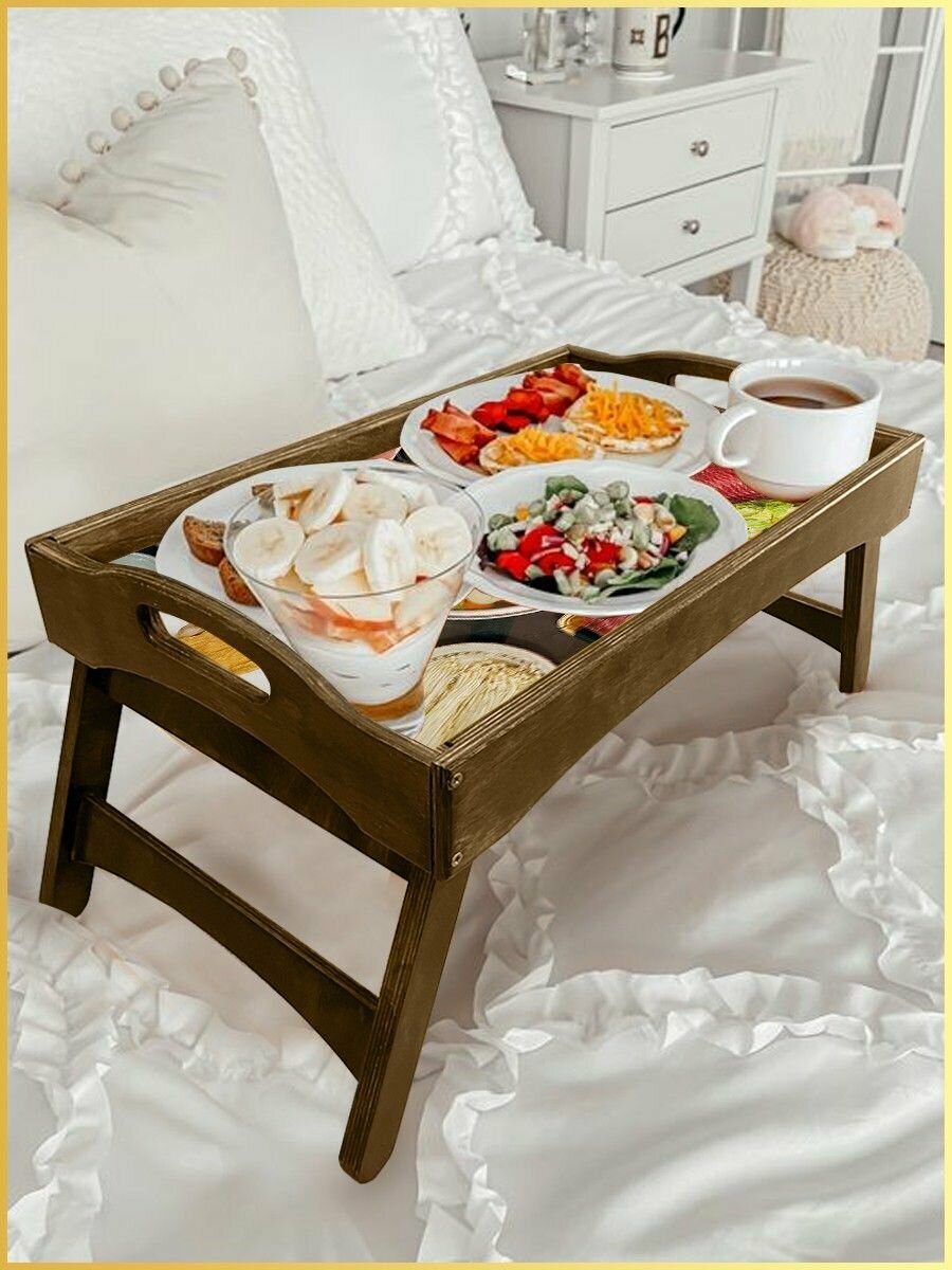 Деревянный поднос со складными ножками для приятного завтрака (обеда и ужина) прямо в постели.