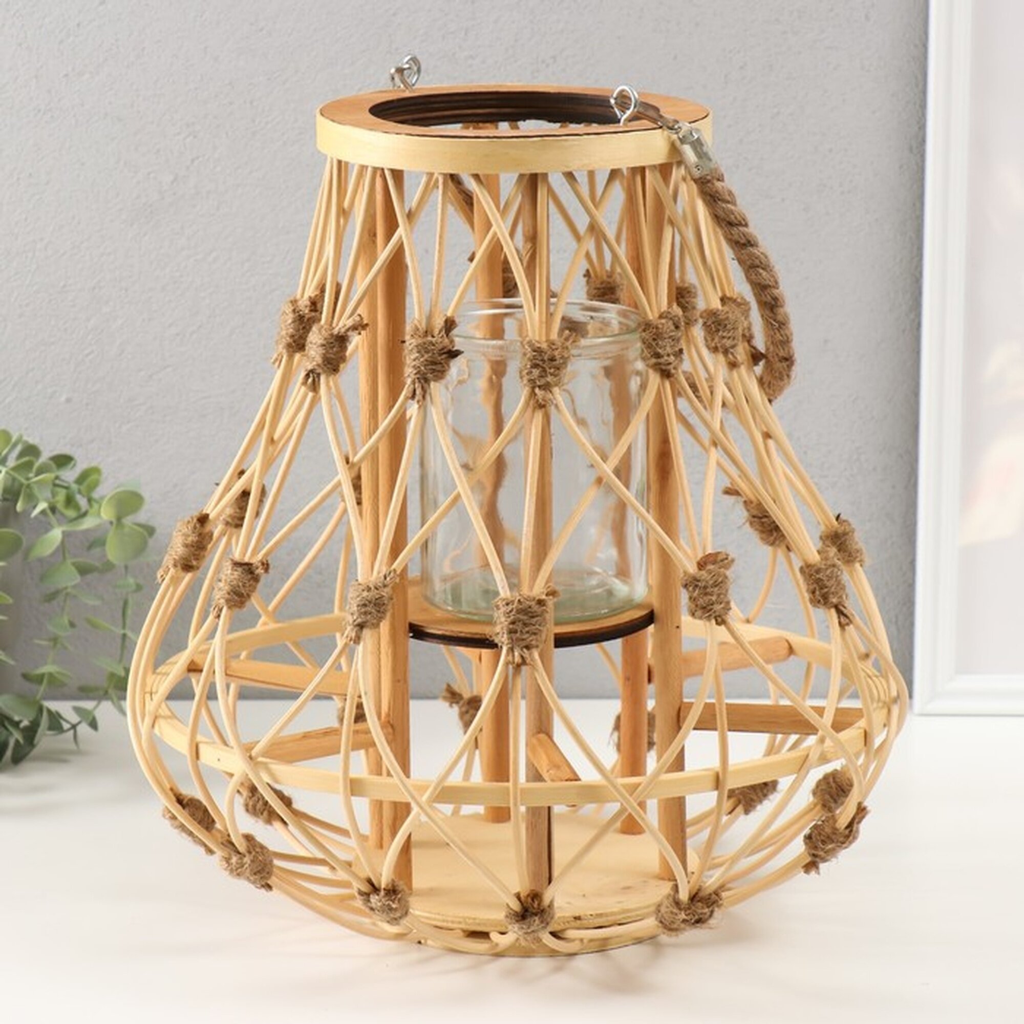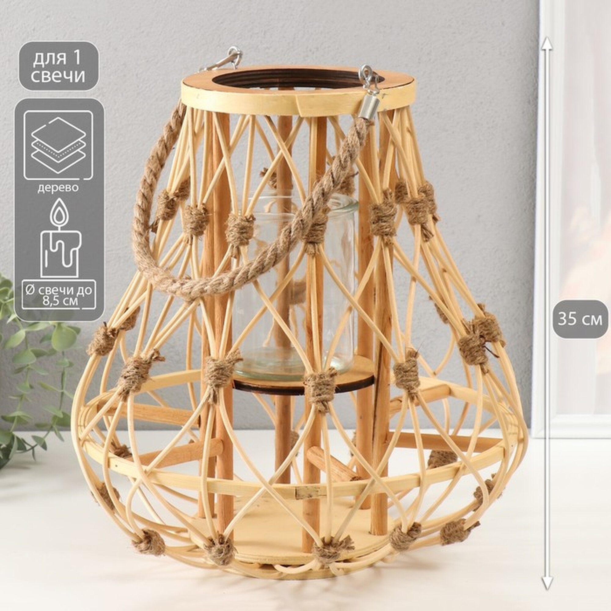 Купить Деревянный подсвечник-фонарь на 1 свечу «Лоза с узелками», натуральный, 16×33×35 см с доставкой по всей России.