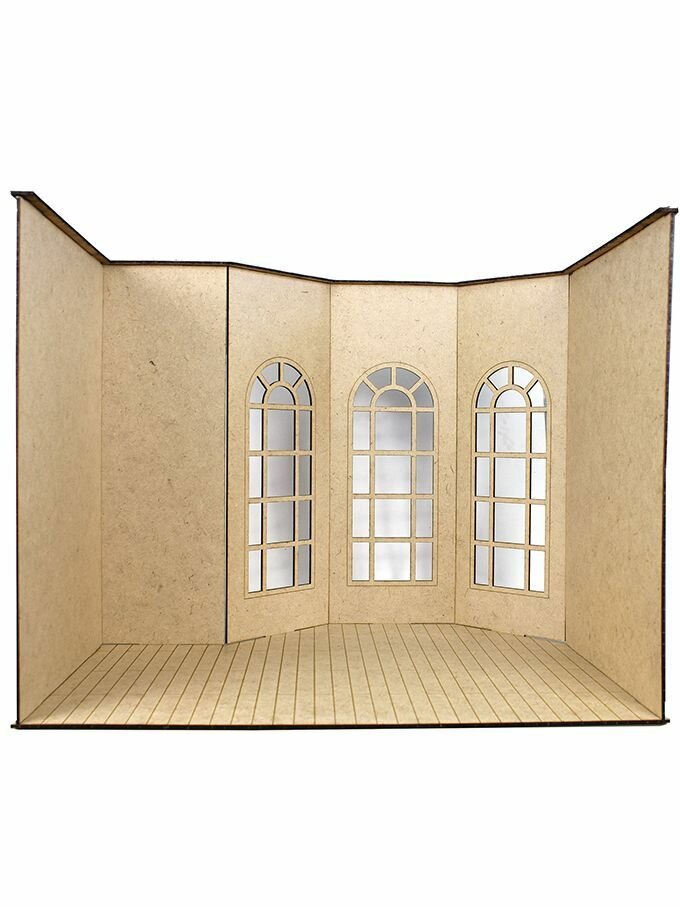 Купить Деревянный румбокс с витражными окнами и крышей Домик для кукол 50х42х40см с доставкой по всей России.