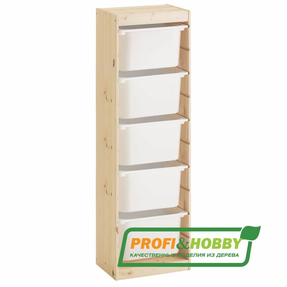 Улучшенная версия TROFAST от Profi&Hobby. Серия деревянной мебели для хранения с легкими пластиковыми контейнерами труфаст . Каркас шкафа изготовлен из массива сосны без покраски. Поверхность изделия отшлифована, готова к покрытию, по желанию можно тонировать в любой цвет. Труфаст - серия удобной и устойчивой мебели для хранения. Создайте индивидуальное решение для хранения, комбинируя разные каркасы и контейнеры. В каркасе подготовлены несколько пазов, в которые вы можете установить контейнеры и в любой момент при необходимости изменить их положение. Расположите модули для хранения на удобной для ребенка высоте, и он сможет самостоятельно достать нужную вещь и навести порядок.