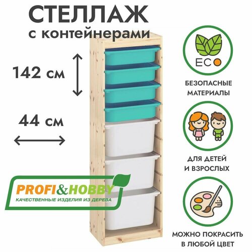 Купить Деревянный стеллаж труфаст 44х30х142 с бирюзовыми (4 шт) и белыми (3 шт) контейнерами с доставкой по всей России. Деревянный стеллаж труфаст 44х30х142 с бирюзовыми (4 шт) и белыми (3 шт) контейнерами: сравнение цен, характеристики, фото, актуальное наличие и цены.