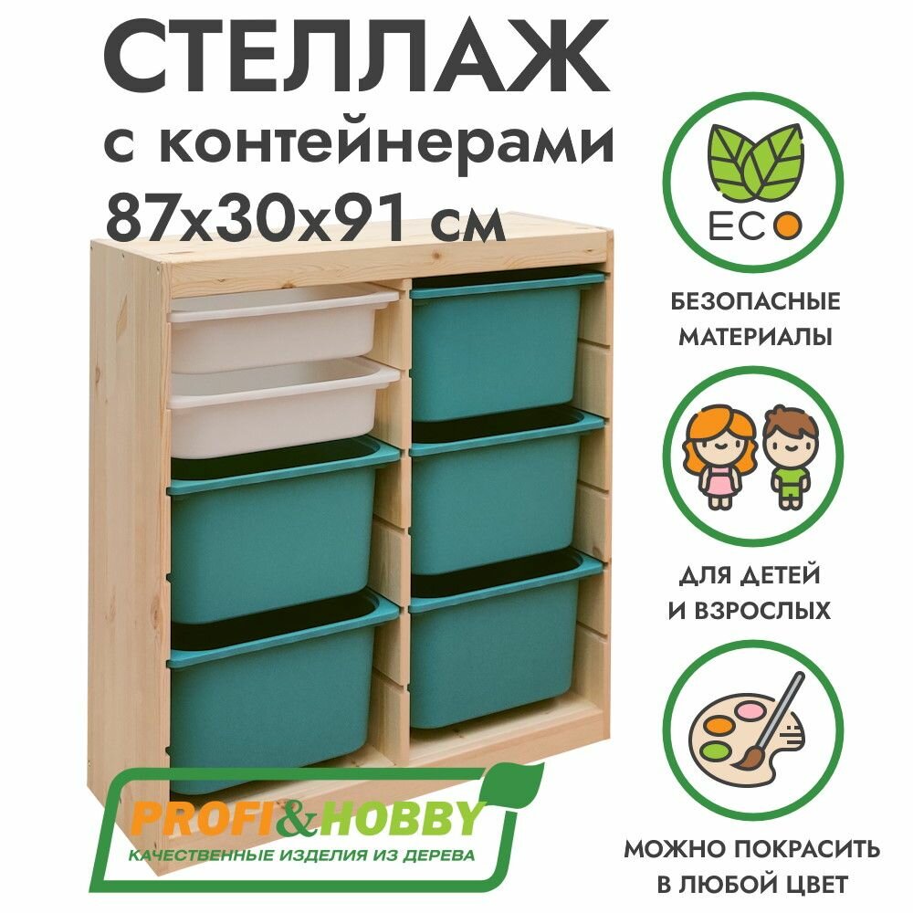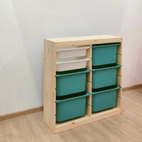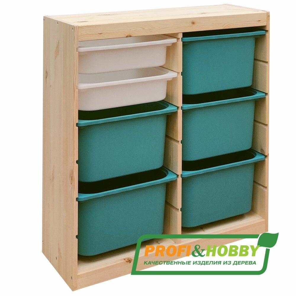 Деревянный стеллаж труфаст 87х30х91 вертикальный двойной с белыми (2 шт) и бирюзовыми (5 шт) контейнерами: сравнение цен, характеристики, фото, актуальное наличие и цены.