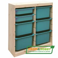 Купить Деревянный стеллаж труфаст 87х30х91 вертикальный двойной с бирюзовыми (2+5 шт) контейнерами с доставкой по всей России.