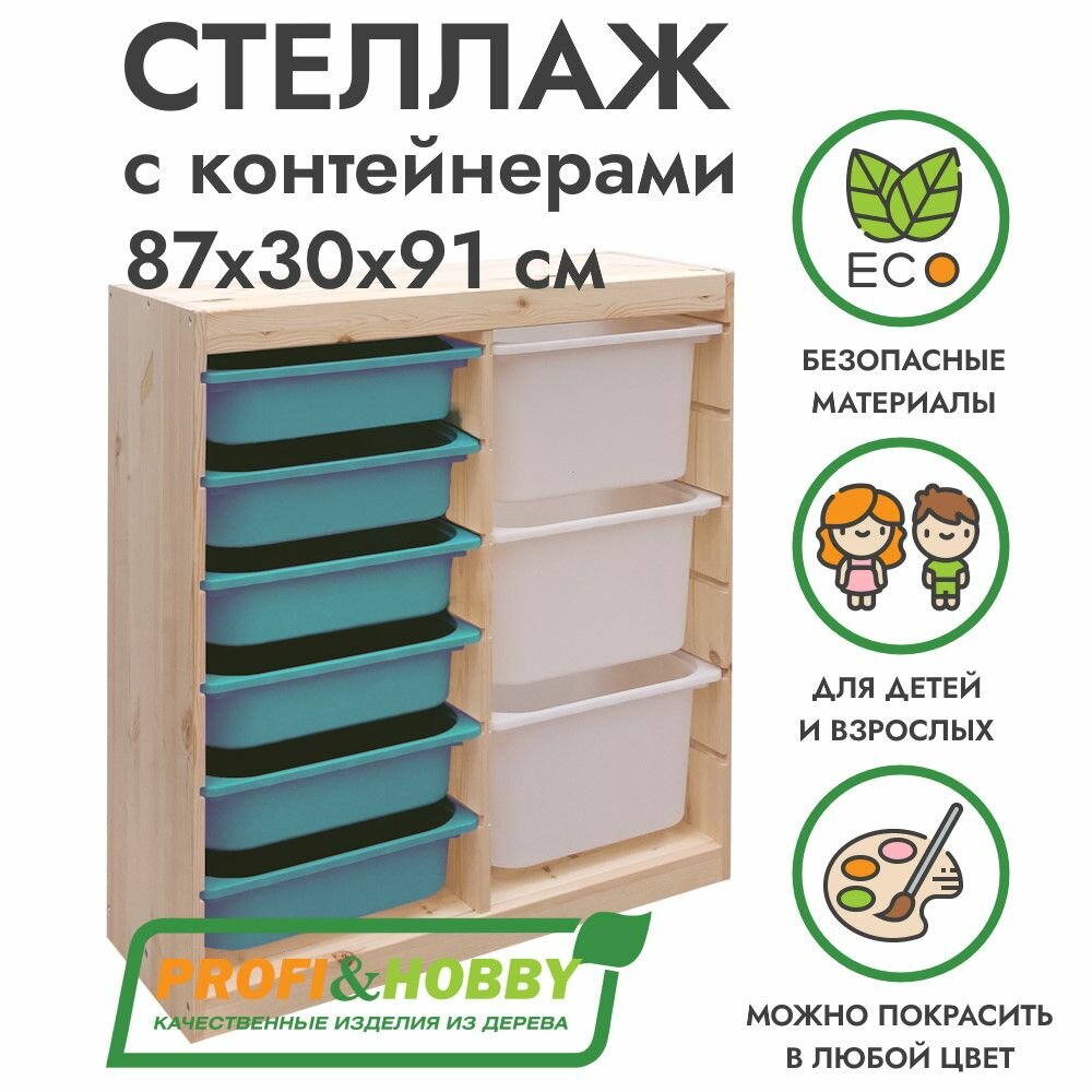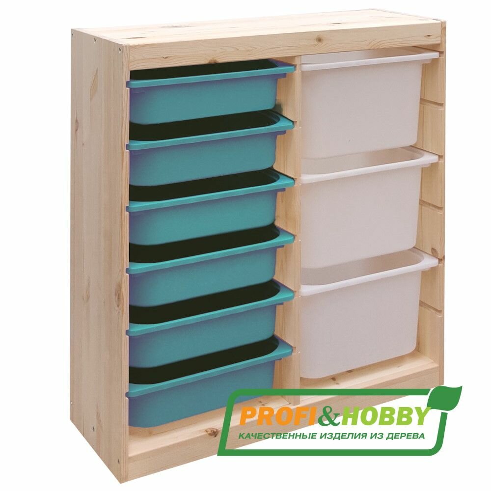 Деревянный стеллаж труфаст 87х30х91 вертикальный двойной с бирюзовыми (6 шт) и белыми (3 шт) контейнерами: сравнение цен, характеристики, фото, актуальное наличие и цены.