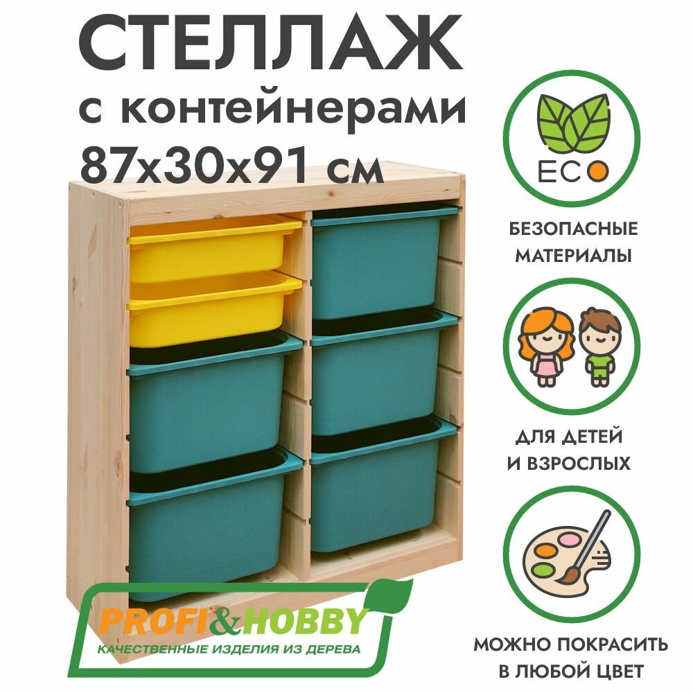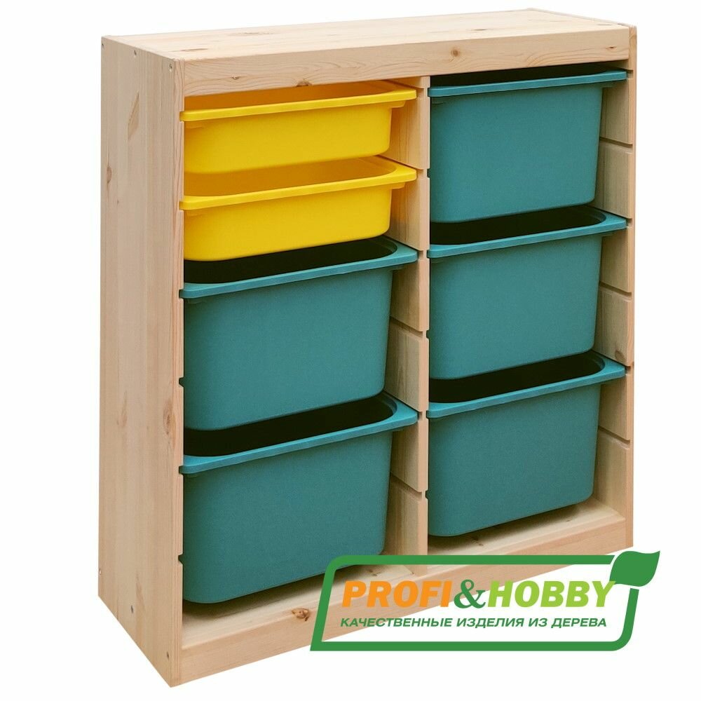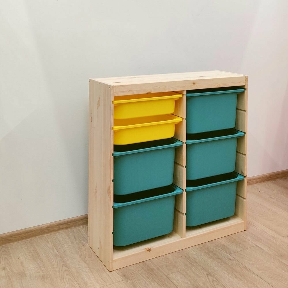 Деревянный стеллаж труфаст 87х30х91 вертикальный двойной с желтыми (2 шт) и бирюзовыми (5 шт) контейнерами: сравнение цен, характеристики, фото, актуальное наличие и цены.