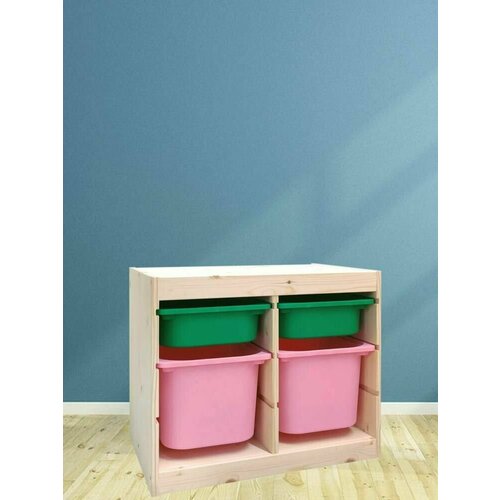 Деревянный стеллаж труфаст 63х44х52 с зелёными (2 шт) и розовыми (2 шт) контейнерами: сравнение цен, характеристики, фото, актуальное наличие и цены.