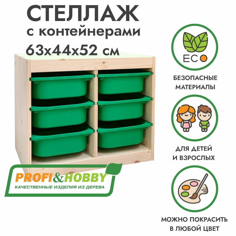 Деревянный стеллаж труфаст 63х44х52 с зелёными (6 шт) контейнерами: сравнение цен, характеристики, фото, актуальное наличие и цены.