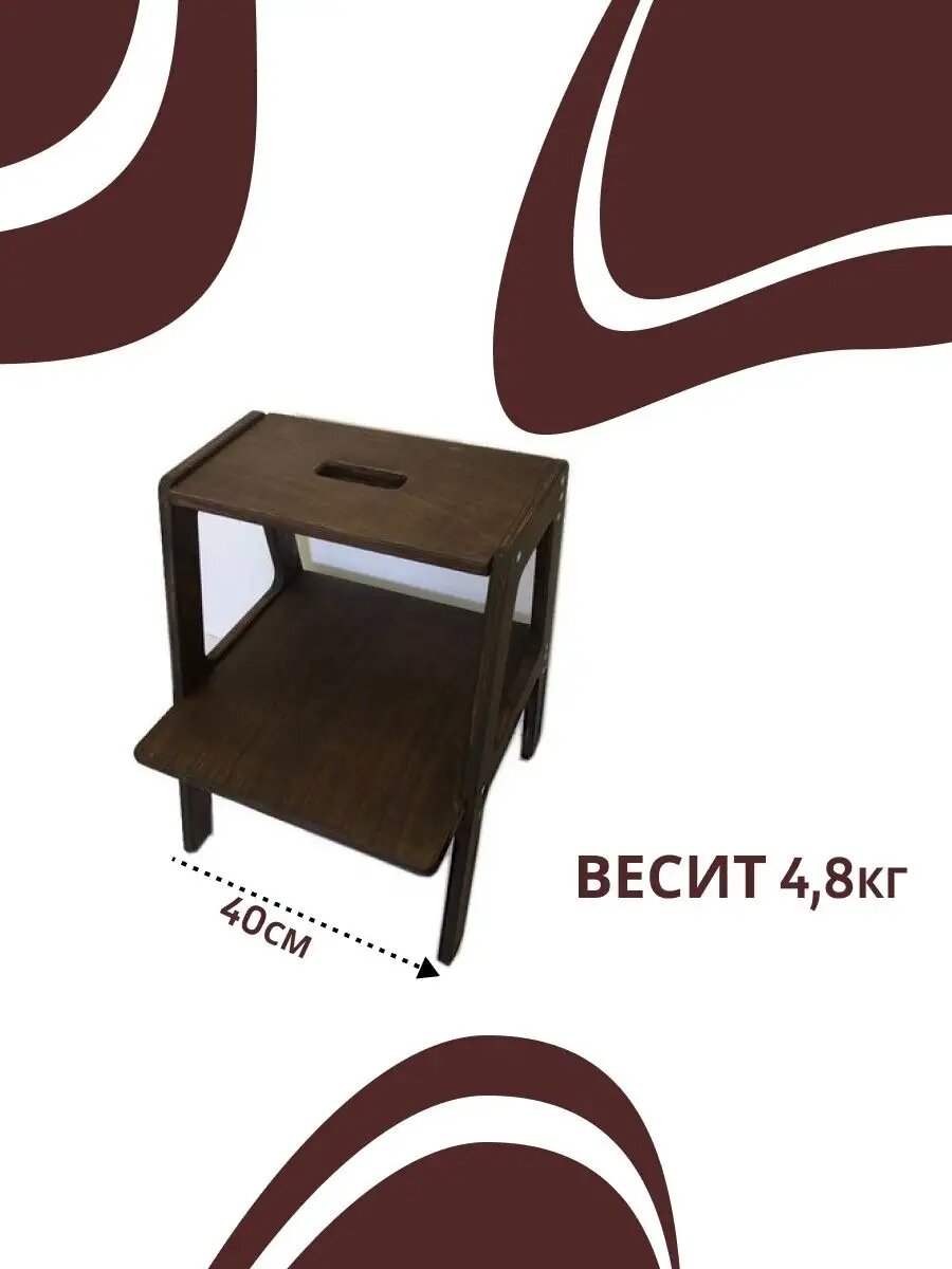 Многофункциональный табурет-стремянка. Табурет стремянка станет верным помощником по дому. Идеально впишется как интерьерное решение для кухни, как деревянная мебель для прихожей, для дачи, для детской. Табуретка может служить и как стремянка, и как подставка. У вас есть дети? Вашему ребёнку больше не придётся карабкаться на высокий стул, чтобы что-то достать из верхнего кухонного ящика или тянуться до раковины - можете быть спокойны, табурет крепкий и устойчивый, но при этом выглядит аккуратно. За счет выреза сверху - его легко переставлять, а весит он 4,8кг. Может служить прикроватным столиком. На этой табуретке отлично разместятся цветы, книги. В высоту - 52см. В ширину и глубину - 40см. Табурет - это прочное и качественное изделие из дерева и выдерживает вес до 120 кг. Выполнен из березовой фанеры ФК 2/2. Весит 5,2кг. Как итог, данный табурет - это отличная дачная, кухонная, детская мебель и просто незаменимый помощник в доме. Покрыт маслом и не нуждается в дополнительной обработке.