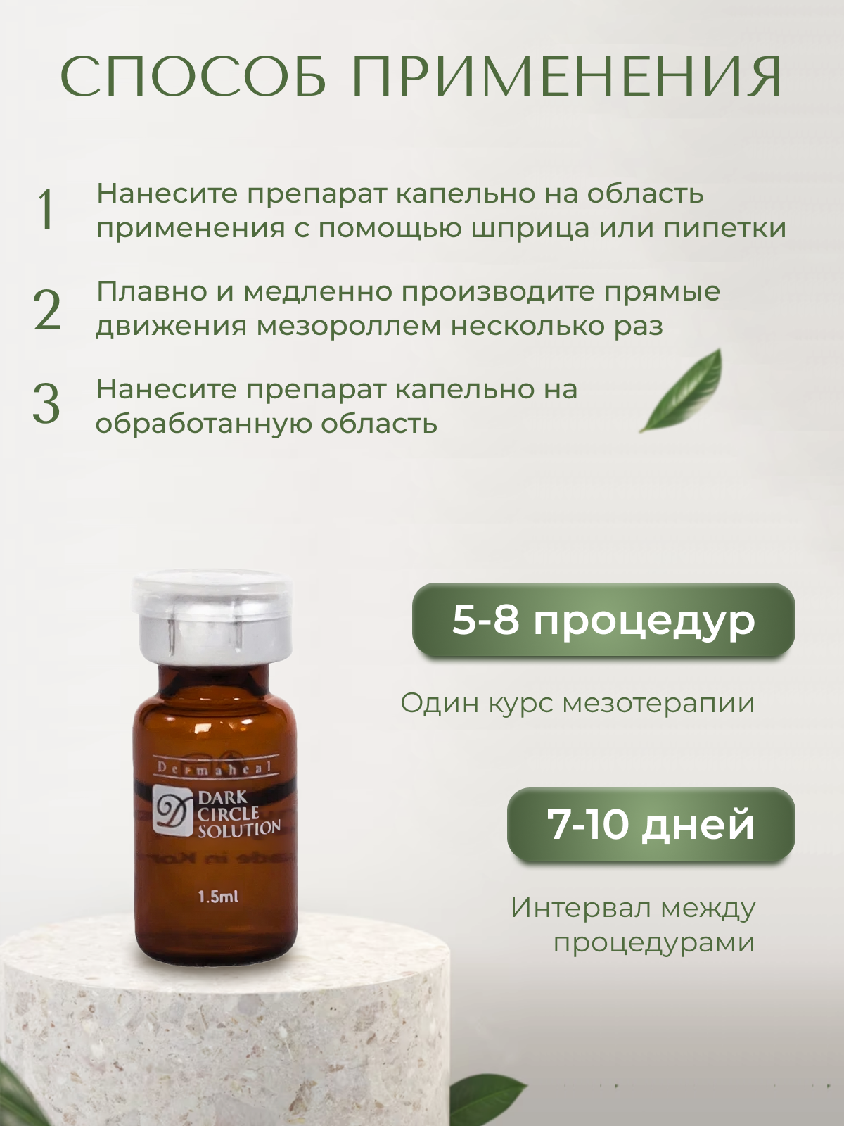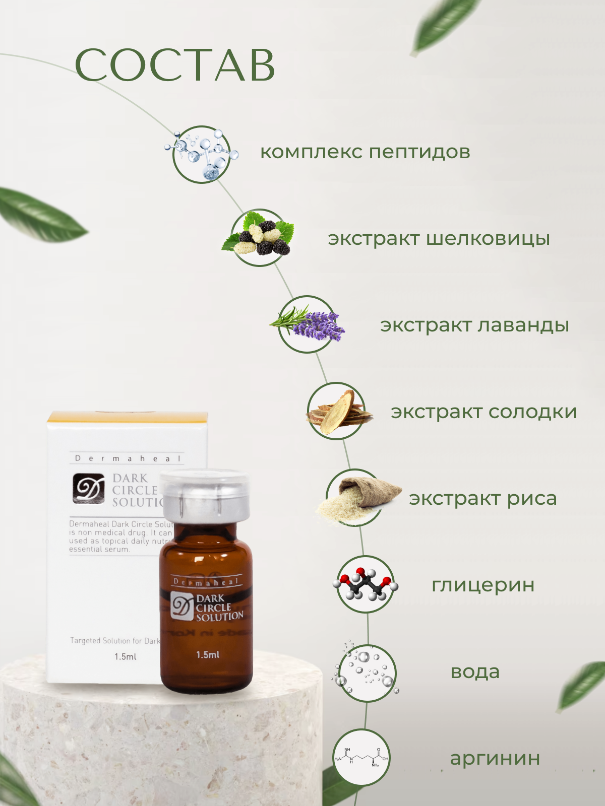 Купить Dermaheal (Дермахил) Dark Circle Solution Средство для кожи вокруг глаз, антивозрастное средство от тёмных кругов под глазами, 5 ампул по 1.5 мл с доставкой по всей России.