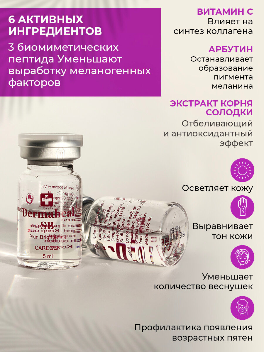 Dermaheal SB применяется при помощи мезороллера на лице, шее, тыльной стороне кистей рук, в зоне декольте. Используется при интенсивном покрытии веснушками после 18 лет, для отбеливания кожи после 35 лет, для предотвращения гиперпигментации после лазерных процедур и химических пилингов. Подходит для женщин и мужчин.