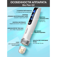 Представляем вам уникальный аппарат для лица Biopen Q2, который станет вашим верным помощником в уходе за лицом и телом дома или в салоне. Этот микротоковый массажер для лица объединяет в себе функции дермапена, микротоки и фототерапии, чтобы обеспечить вам настоящую косметологическую процедуру прямо у вас дома. Сделайте свою бьюти-рутину более эффективной благодаря этому массажеру для лица. Аппарат для лица оснащен технологией EMS, которая стимулирует выработку коллагена на 3 разных уровнях интенсивности. Теперь ваша кожа будет в отличной форме, а морщины будут заметно разглажены. Изменяемая длина иглы (от 0 до 1,5 мм) позволяет обрабатывать различные зоны удобно и безопасно. Необычной особенностью этого профессионального устройства является использование фототерапии с красным и синим светом. Красный свет повышает тонус и стимулирует процессы регенерации, а синий свет помогает бороться с акне, высыпаниями и черными точками. Такое сочетание способствует увлажнению и делает кожу упругой и здоровой. Мезотерапия создает микроканалы в эпидермисе для доставки мезо сывороток для роста волос и уменьшения заломов. Сочетание электростимуляции и фракционной мезотерапии позволяет добиться максимального впитывания средств, предотвращая выпадение волос на голове и бороде. Этот гаджет дополнен смарт-экраном, который позволяет удобно выбирать программы и режим работы. А также обладает функцией автоматической подачи игл. Приобрести прибор стоит для борьбы с постакне, пигментными пятнами, отеками и мешками под глазами, от морщин. массажер для лица также поможет вам добиться эффекта подтяжки контура, сужения пор и избавления от целлюлита и растяжек. Кроме того, курсовое применение аппарата способствует разглаживанию шрамов и рубцов. В комплекте dermapen индукционная подставка для временной приостановки работы. После снятия с нее электро мезороллер продолжает работу в установленном ранее режиме и скорости.