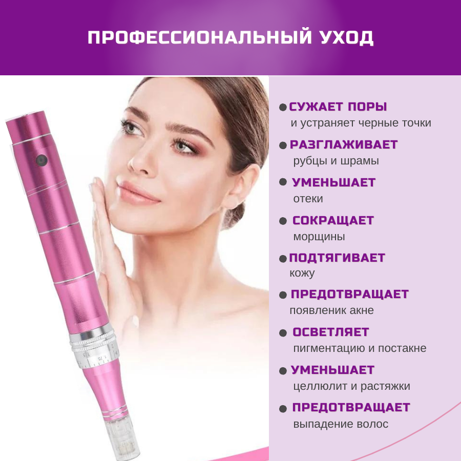 Дермапен - это аппарат для микропроколов кожи, который помогает решить множество проблем с кожей. Он работает от аккумулятора и имеет возможность регулировать длину иголок от 0,25 до 2 мм. Каждая процедура проводится с помощью стерильных картриджей, которые можно приобрести отдельно.