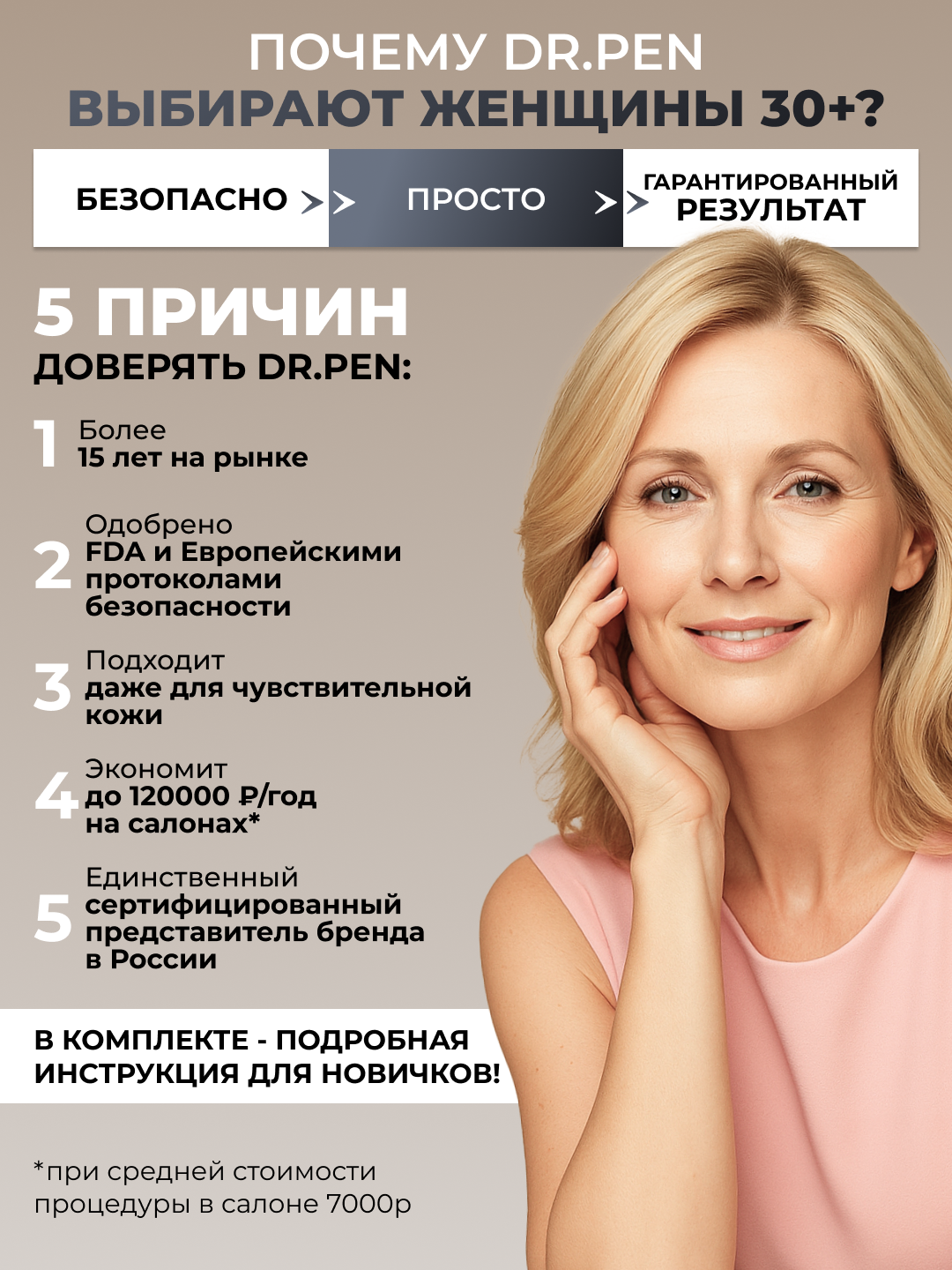 Новинка 2023 года! Dr pen A8S – дермапен для омоложения кожи лица и тела. Мезопен - это новый этап в косметологии. Если вы ищете способ омолодить вашу кожу лица, вокруг глаз, а также шеи, декольте и тела, безопасно и эффективно, то дермопен - это то, что вам нужно. Это прорыв в области аппаратной косметологии, который борется со многими проблемами, такими как целлюлит, птоз, мимическими и глубокими морщинами и т. д. Аппарат - это профессиональная мезотерапия в удобном исполнении для использования дома или в салонах красоты Ручка для микронидлинга - это устройство для фракционной мезотерапии, которое заменяет инъекции ботокса, филлеры. Он рекомендован для антивозрастного ухода за кожей лица и тела для женщин и мужчин, биоревитализации. Прибор помогает выработать собственный коллаген и эластин, что делает его более безопасным способом для омоложения и увлажнения кожи лица. Beauty - девайс использует технологию омолаживающей микроигольчатой терапии, которая позволяет создавать микроскопические отверстия в коже. Это стимулирует естественную регенерацию кожи и укрепляет ее, улучшает микроциркуляцию крови и лимфы, что в свою очередь устраняет многие проблемы кожи, такие как пигментация, отечность, сухость, предотвращает угри, прыщи, комедоны и т. д. Благодаря своей уникальной технологии, электрический массажер помогает повысить эффективность косметических средств, таких как увлажняющие мезококтейли и сыворотки, они лучше проникают в глубокие слои кожи и улучшают ее состояние, оказывают отбеливающий и подтягивающий эффект. Косметологический аксессуар- это идеальный подарок для любого, кто хочет омолодить свою кожу без прохождения дорогих процедур в салоне красоты. Используя гаджет, вы можете получить результаты, которые раньше можно было достичь только с помощью проф косметолога. Массажер для лица позволяет вам массировать кожу лица и тела, удалять отеки и мешки под глазами, увлажнять кожу и даже бороться с пигментными пятнами и постакне. Оборудование не только омолаживает кожу, но и укрепляет ее, делая ее более упругой и эластичной. Dermapen помогает выровнять тон кожи, сузить расширенные поры, оказывает лифтинг эффект, а также бороться с такими несовершенствами кожи как растяжки, рубцы и шрамы, а также птоз. Устройство успешно борется с гусиными лапками, вторым подбородком, оказывает антицеллюлитный эффект. Подобная техника поможет вам поддерживать здоровье вашей кожи. Она предназначена для использования на любом типе кожи, включая возрастную, жирную, сухую, комбинированную, чувствительную и проблемную кожу. Массажёр для лица также может быть использован для ухода за кожей головы, бороды и волосами, усиливая густоту и предотвращая выпадение. Дерпопен идеально подходит для процедуры bb glow и позволяет получить тональный и матирующий эффект от серумов, избавиться от веснушек. После процедуры воспользуйтесь вашей любимой уходовой косметикой: успокаивающей маской или кремом. В период активных процедур также рекомендуется использовать крем с высокой spf защитой. Добавьте коже сияния и здоровья. Новый дизайн одноразовых картриджей с более стабильным трехконтактным замком для надежного крепления и безопасной процедуры.