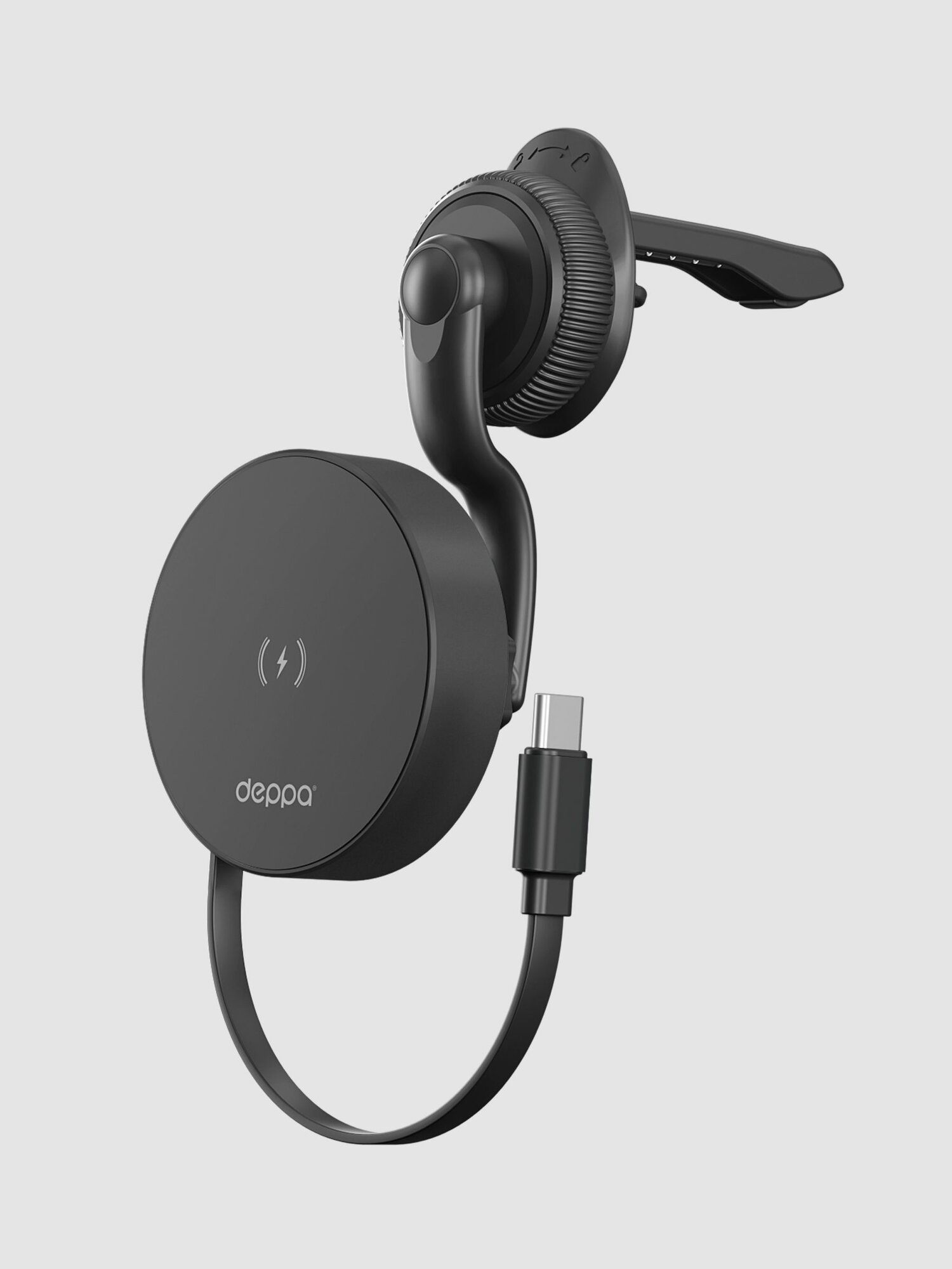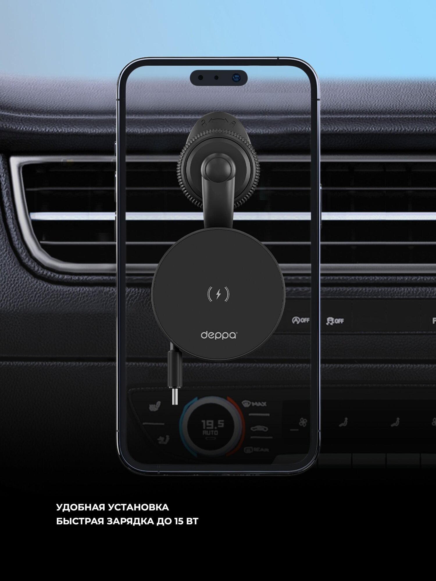 Держатель автомобильный Deppa Magic Cable 55213, магнитный, беспроводная зарядка Qi, Black: сравнение цен, характеристики, фото, актуальное наличие и цены.