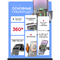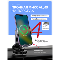 Купить Держатель автомобильный на стекло/торпеду выдвижной c беспроводной зарядкой, HW8, HOCO, черный с доставкой по всей России.
