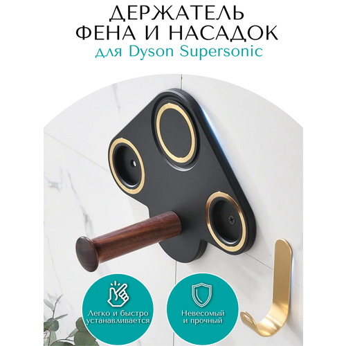 Настенный держатель для фена Dyson Supersonic и насадок BT-08 Материал: алюминиевый сплав Цвет: черный, золотистый Размер: 19.5 x 16.2 x 9.6 см Фен и насадки в комплект не входят!