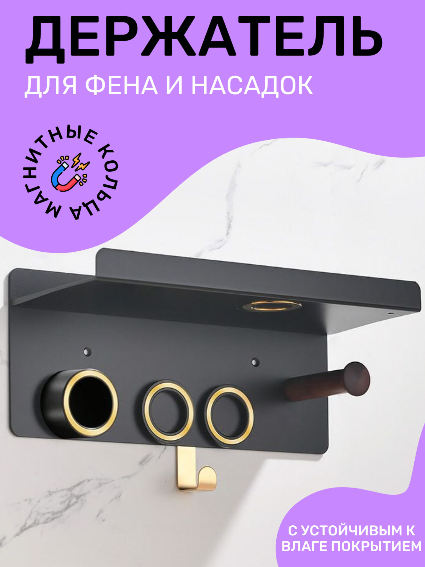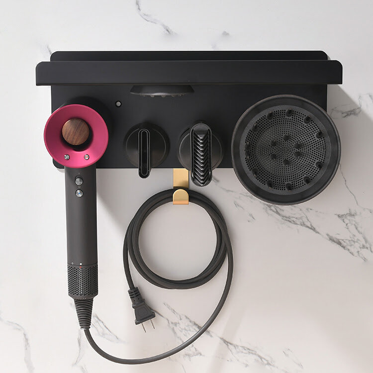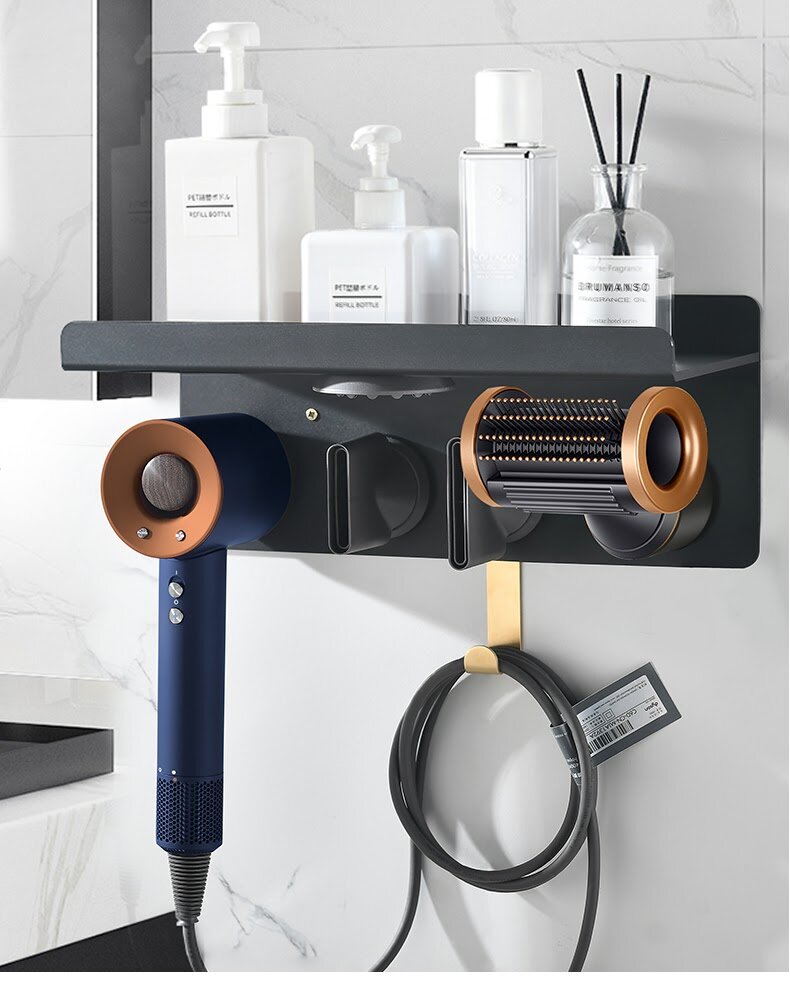 Держатель для фена Dyson Supersonic и насадок / настенная полка BC-02 Цвет: черный, золотистый Материал: алюминиевый сплав Фен и насадки в комплект не входят!