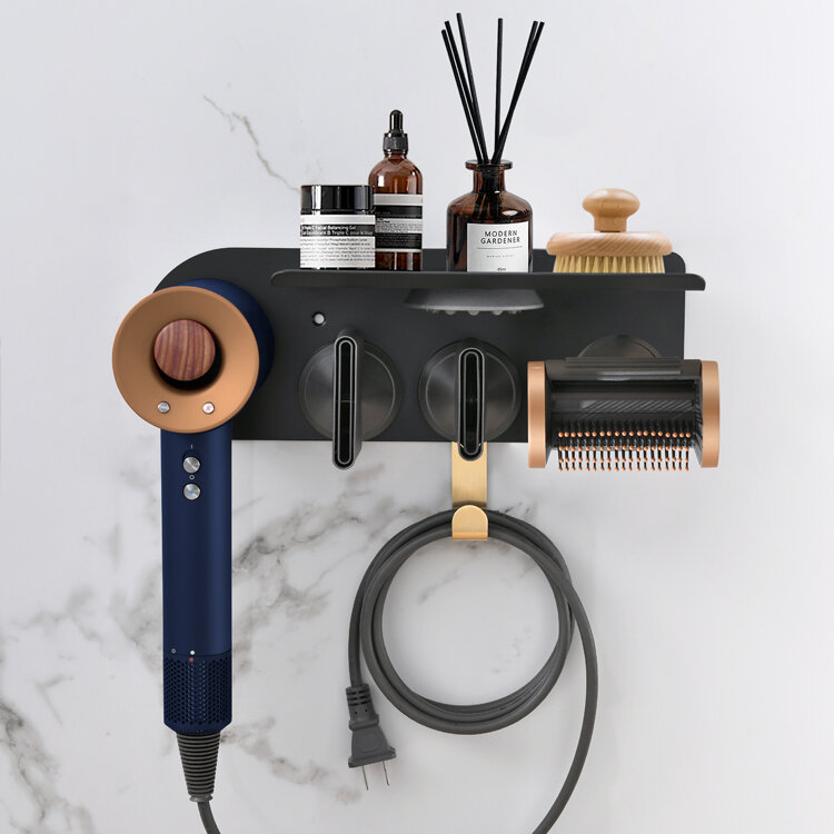 Стильный и многофункциональный аксессуар для вашего дома. Благодаря элегантной подставке для фена, изготовленной из прочного материала, фен всегда занимает свое место и готов к работе каждое утро. Разработано специально для насадок фена Dyson Аксессуар - прочный, с устойчивым к влаге покрытием. Можно использовать как подставку под средства для ухода за волосами