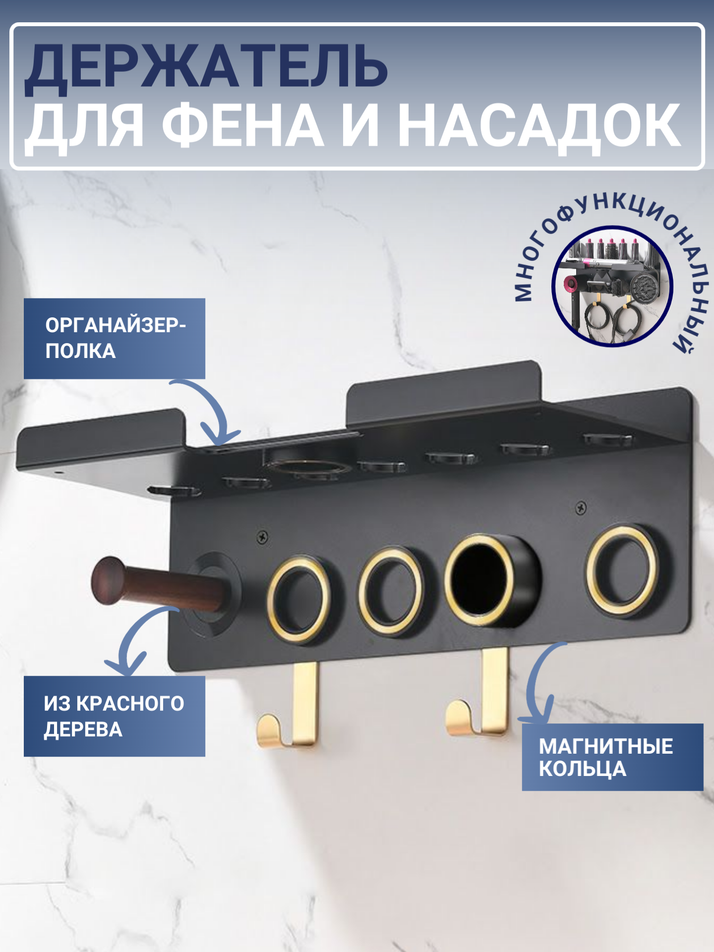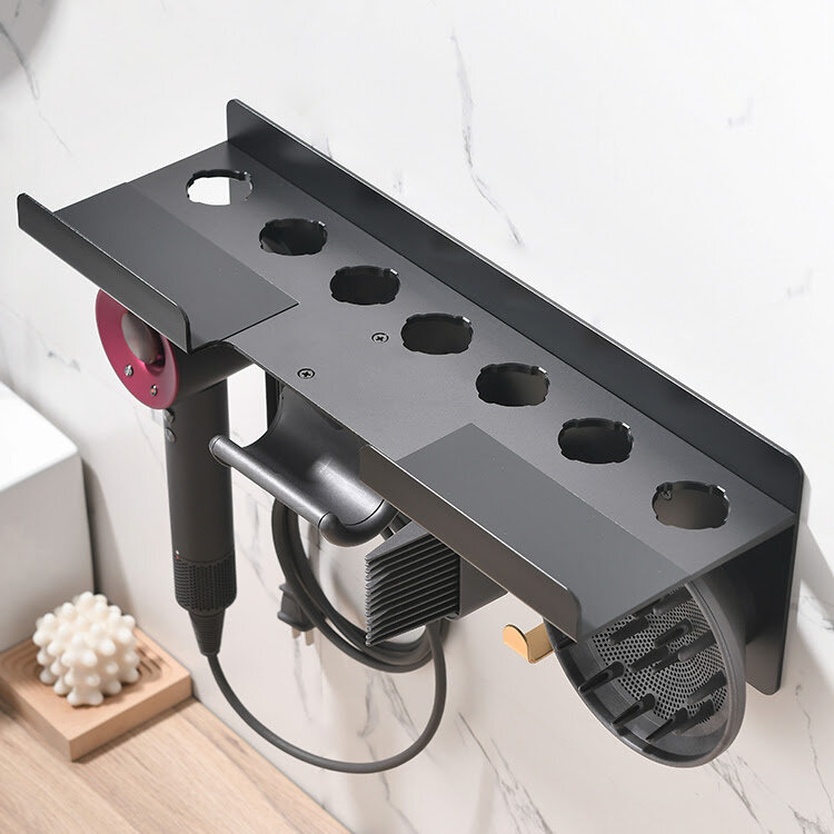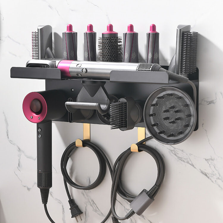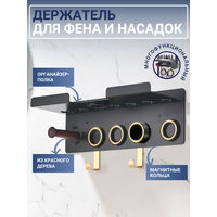 Держатель для фена Dyson Supersonic и насадок / настенная полка BW-02 Цвет: черный, золотистый Материал: алюминиевый сплав Фен и насадки в комплект не входят!