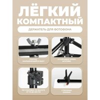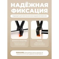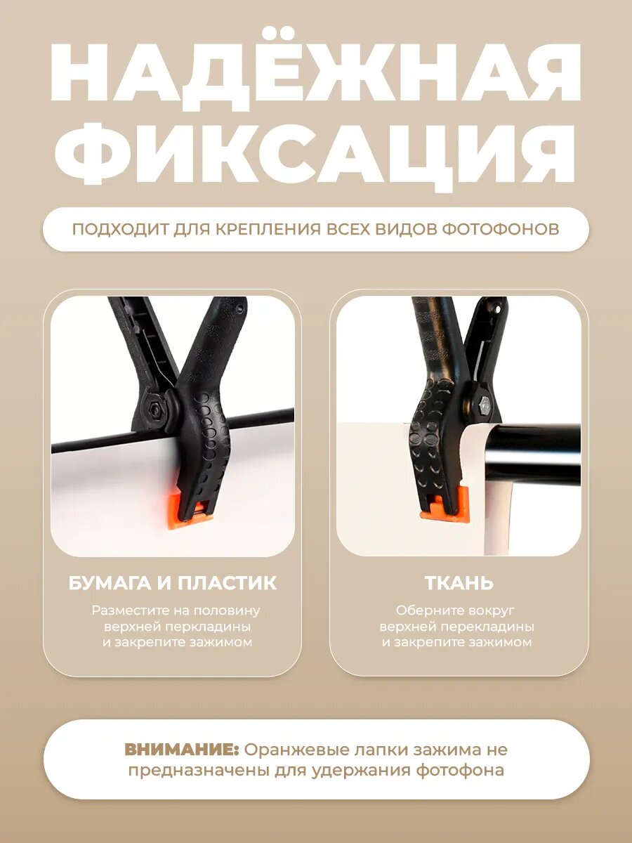 Наша стойка для фотофона с прищепками обеспечивает стабильную поддержку и надежное крепление вашего фотофона. Интуитивно понятная система крепления позволяет быстро и легко установить необходимый фон для съемки.