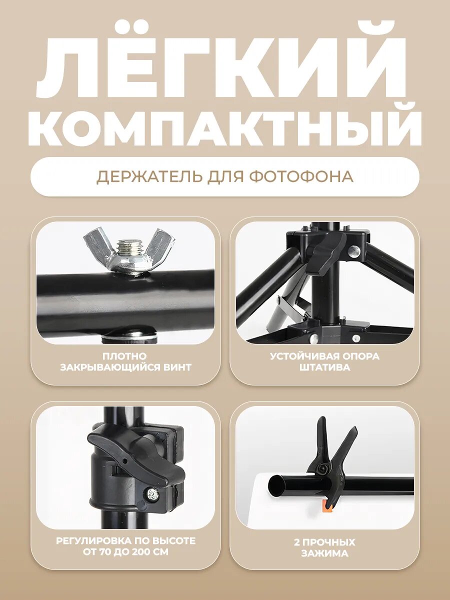 Стойка для фотофона: идеальное решение для профессиональных съемок! Хотите создавать идеальные снимки без лишних усилий? Наша стойка для фотофона - это надежный инструмент для профессиональных фотосъемок. С ее помощью вы сможете легко установить и фиксировать бумажный, пластиковый или тканевый фотофон, создавая идеальные условия для фотосессии.