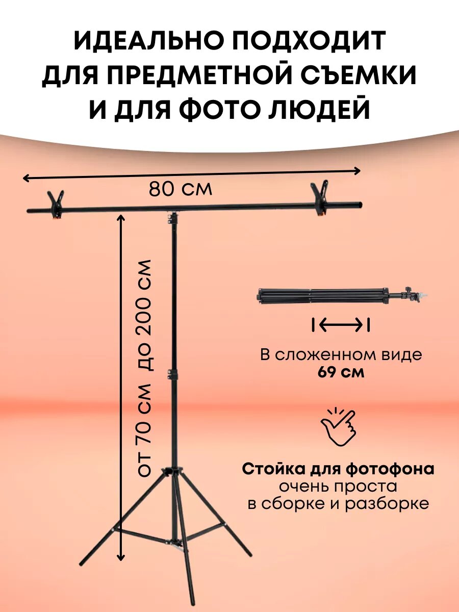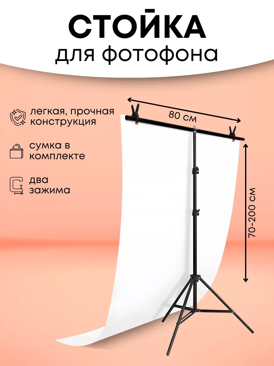 Стойка для фотофона: идеальное решение для профессиональных съемок! Хотите создавать идеальные снимки без лишних усилий? Наша стойка для фотофона - это надежный инструмент для профессиональных фотосъемок. С ее помощью вы сможете легко установить и фиксировать бумажный, пластиковый или тканевый фотофон, создавая идеальные условия для фотосессии.
