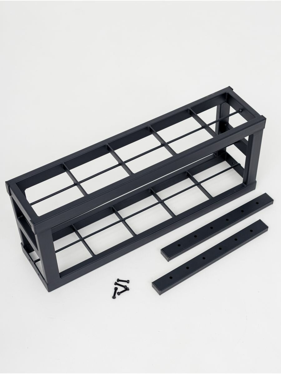 Наши длинные держатели можно соединять друг с другом и за счет опор скрепить между собой. Выберите необходимые держатели, например держатель для 4х для сноубордов и держатель для 5 лыж и соедините их между собой. Таким образом можно соединить бесконечное количество необходимых Вам стоек.