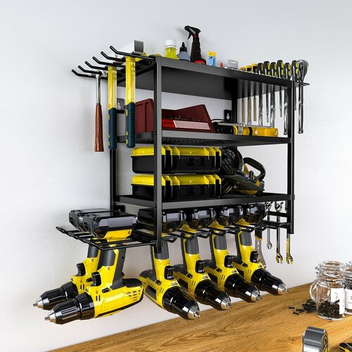 1. Цельный металлический настенный стеллаж, подвесной стеллаж для хранения сверл и отверток, настенный стеллаж для хранения инструментов Компактный дизайн, нескользящий, подходит для организации мастерских и гаражей 2. Организуйте электроинструменты: Этот органайзер крепит электроинструменты и принадлежности для сверления к стене для удобства доступа и организации. 3. Прочная металлическая конструкция: Изготовлен из прочного металла с черной отделкой, прочный и стильный. 4. Конструкция для настенного монтажа: Оснащенный настенным кронштейном, он обеспечивает быструю и легкую установку. 5. Многослойное хранилище: Имеет две полки и два стеллажа для инструментов, что обеспечивает гибкие возможности хранения. Грузоподъемность: Вмещает инструменты и принадлежности весом до 50 фунтов, подходит для использования в тяжелых условиях.