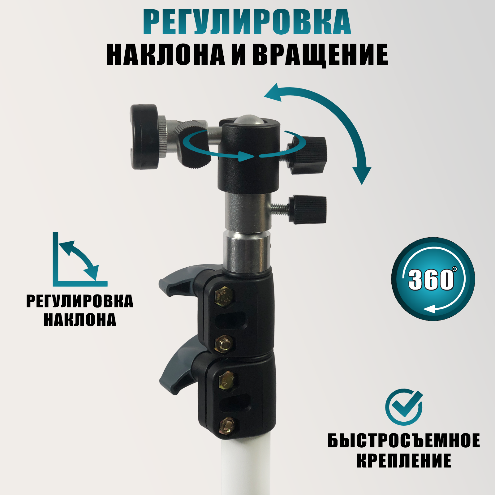 Держатель для камеры, резьба 3/8, 1/4 и в паз, и фотозонт UW-100 на напольной стойке WST-156