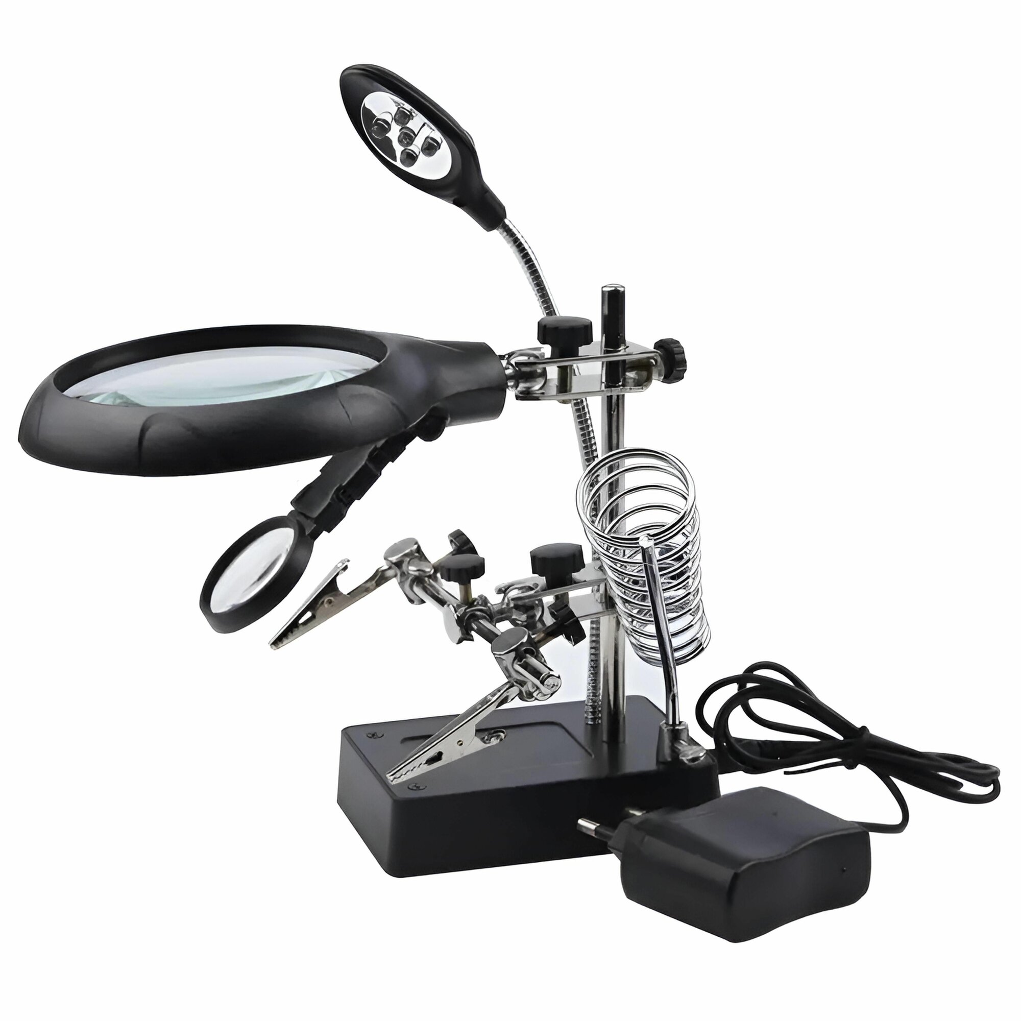 Купить Держатель для пайки с 3-мя лупами и подсветкой, инструмент третья рука с доставкой по всей России. Держатель для пайки с 3-мя лупами и подсветкой, инструмент третья рука: сравнение цен, характеристики, фото, актуальное наличие и цены.