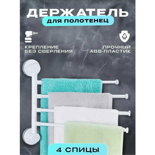 Держатель выполнен в современном стиле и легко впишется в любой интерьер. Он оснащен четырьмя спицами, которые крутятся на 180 градусов, что позволяет быстро достать необходимое полотенце.