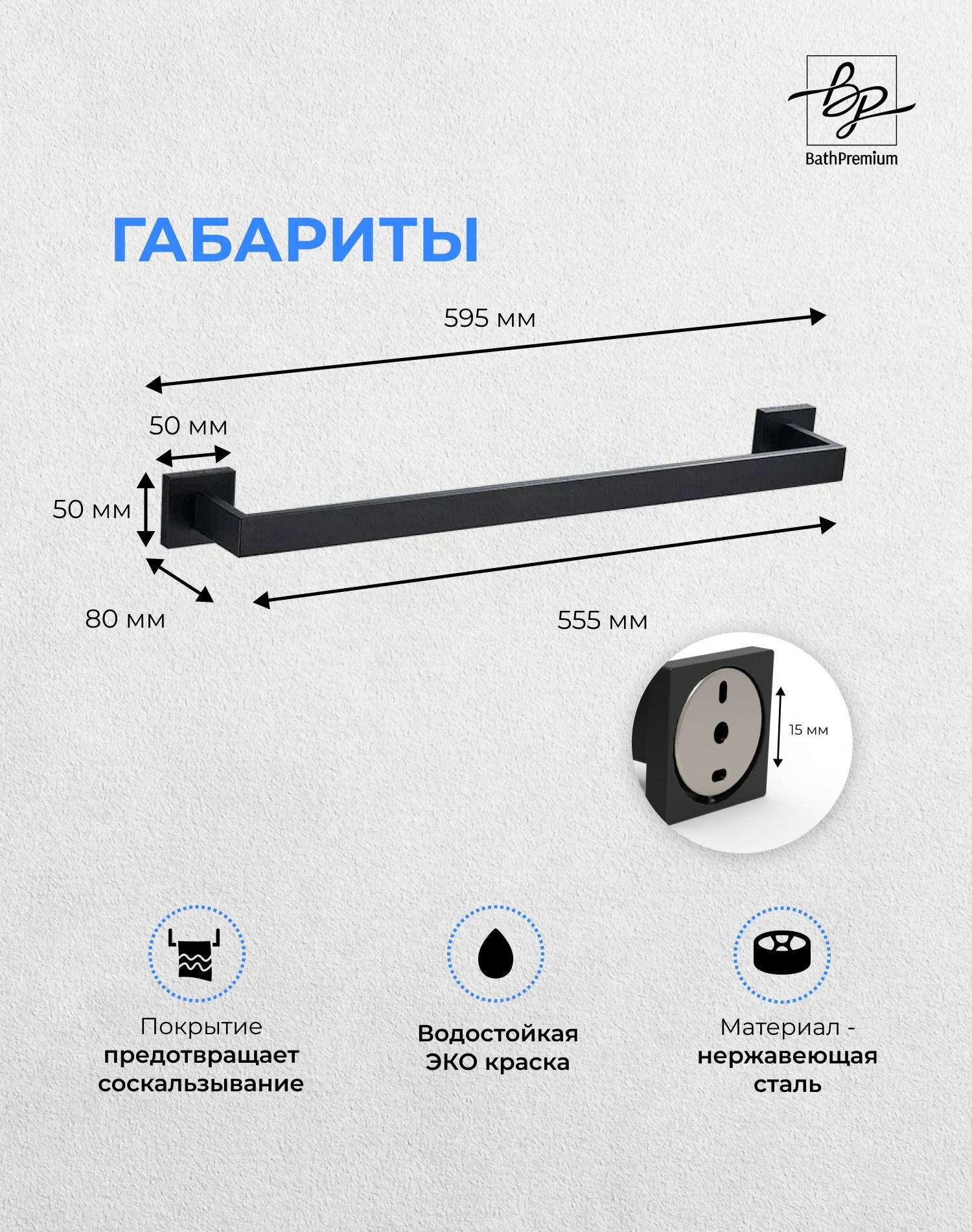 Купить Держатель для полотенец El Grao черный матовый 59 см / Полотенцедержатель из нержавеющей стали для ванной и кухни с доставкой по всей России.