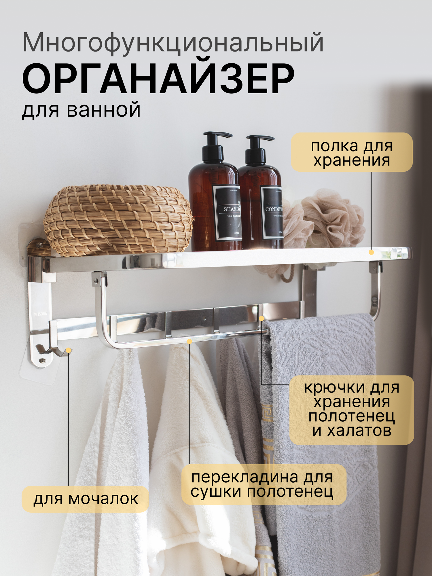 Держатель для полотенец халатов / вешалка с полкой в ванную / полотенцедержатель Vexorus: сравнение цен, характеристики, фото, актуальное наличие и цены.