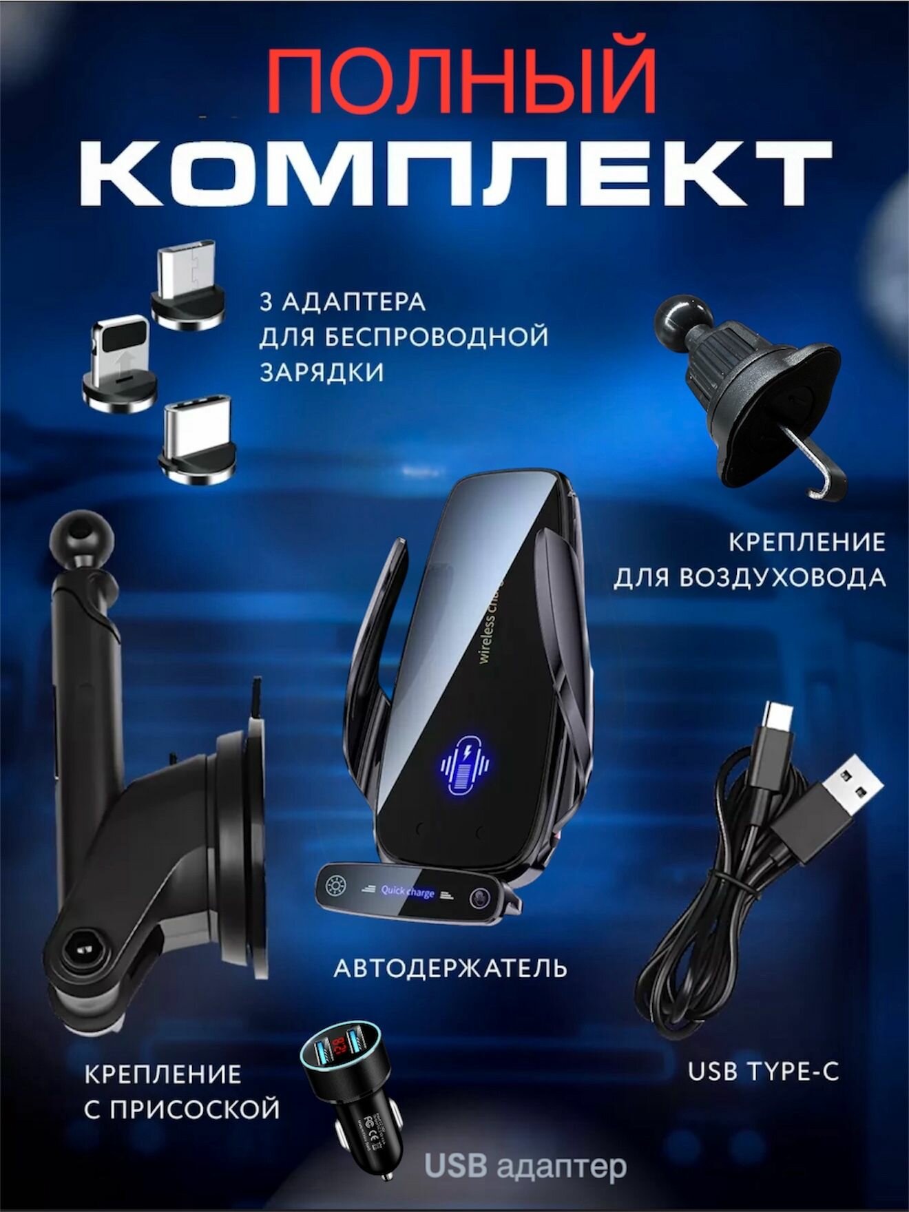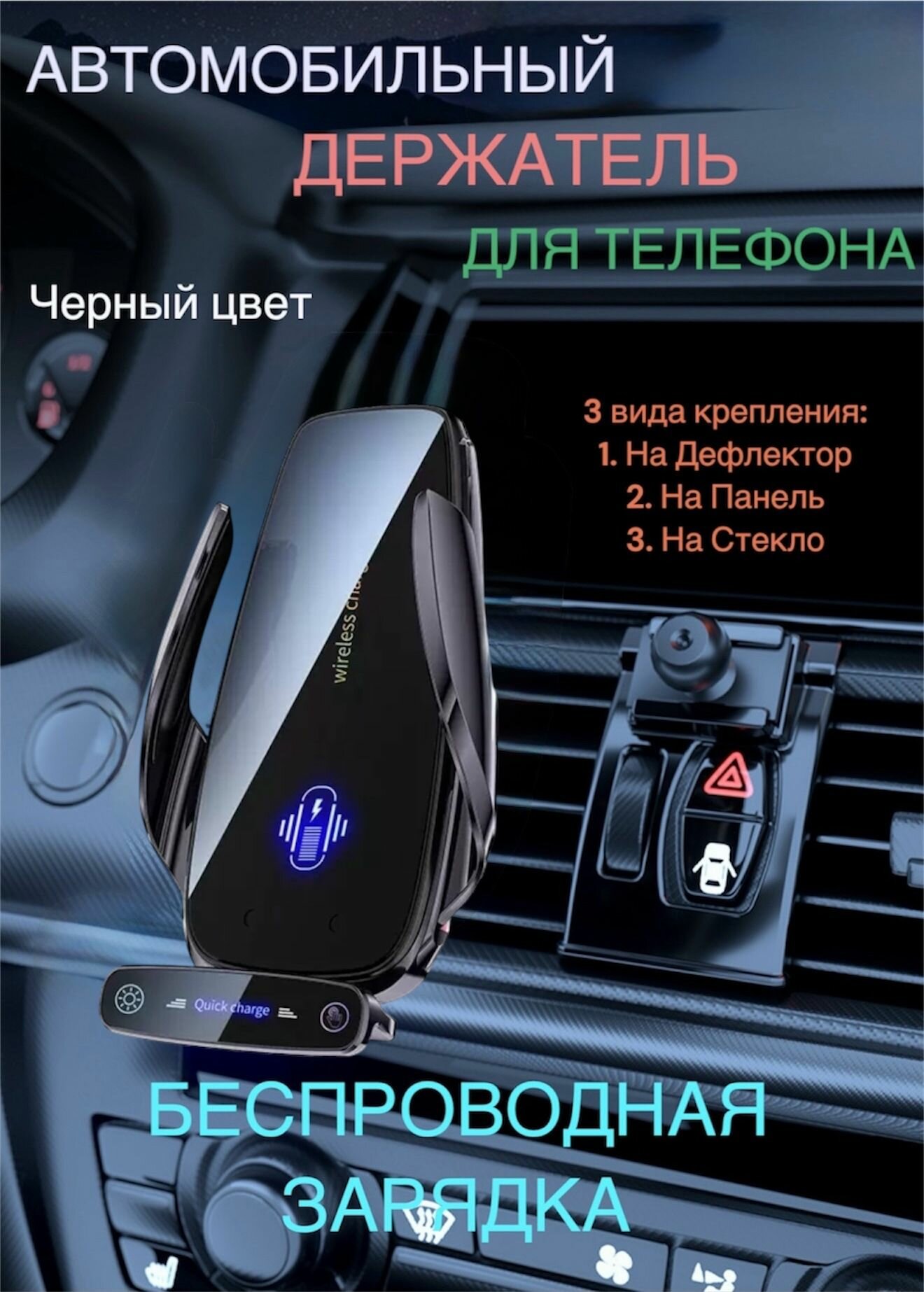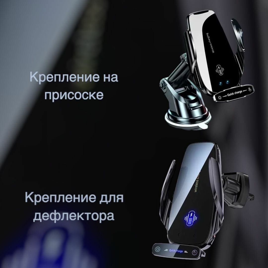 Магнитный держатель с беспроводной зарядкой и синей подсветкой.