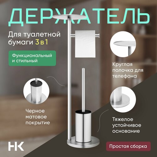 - Аксессуар для ванной 3 в 1: держатель для бумаги, ершик и полочка для телефона