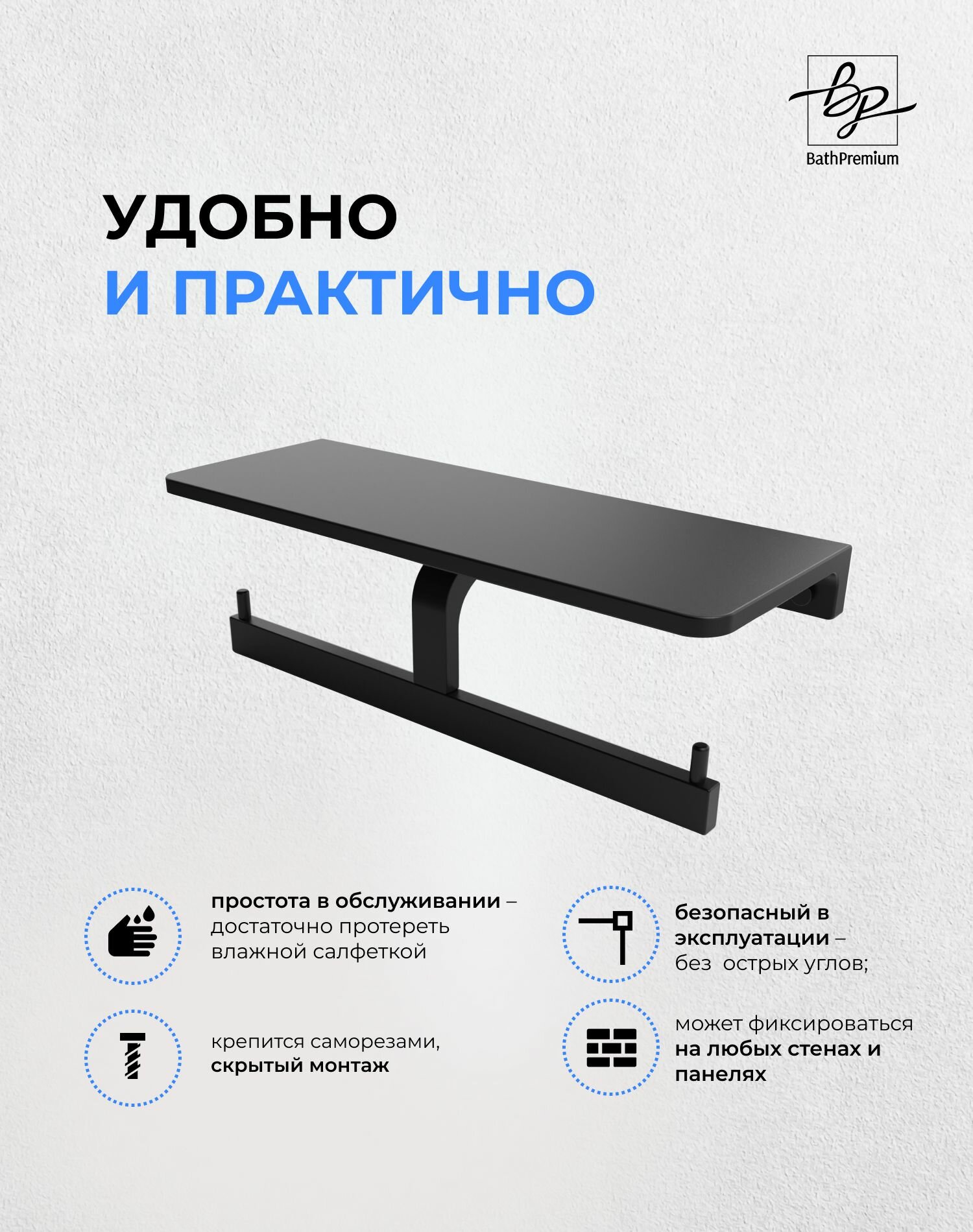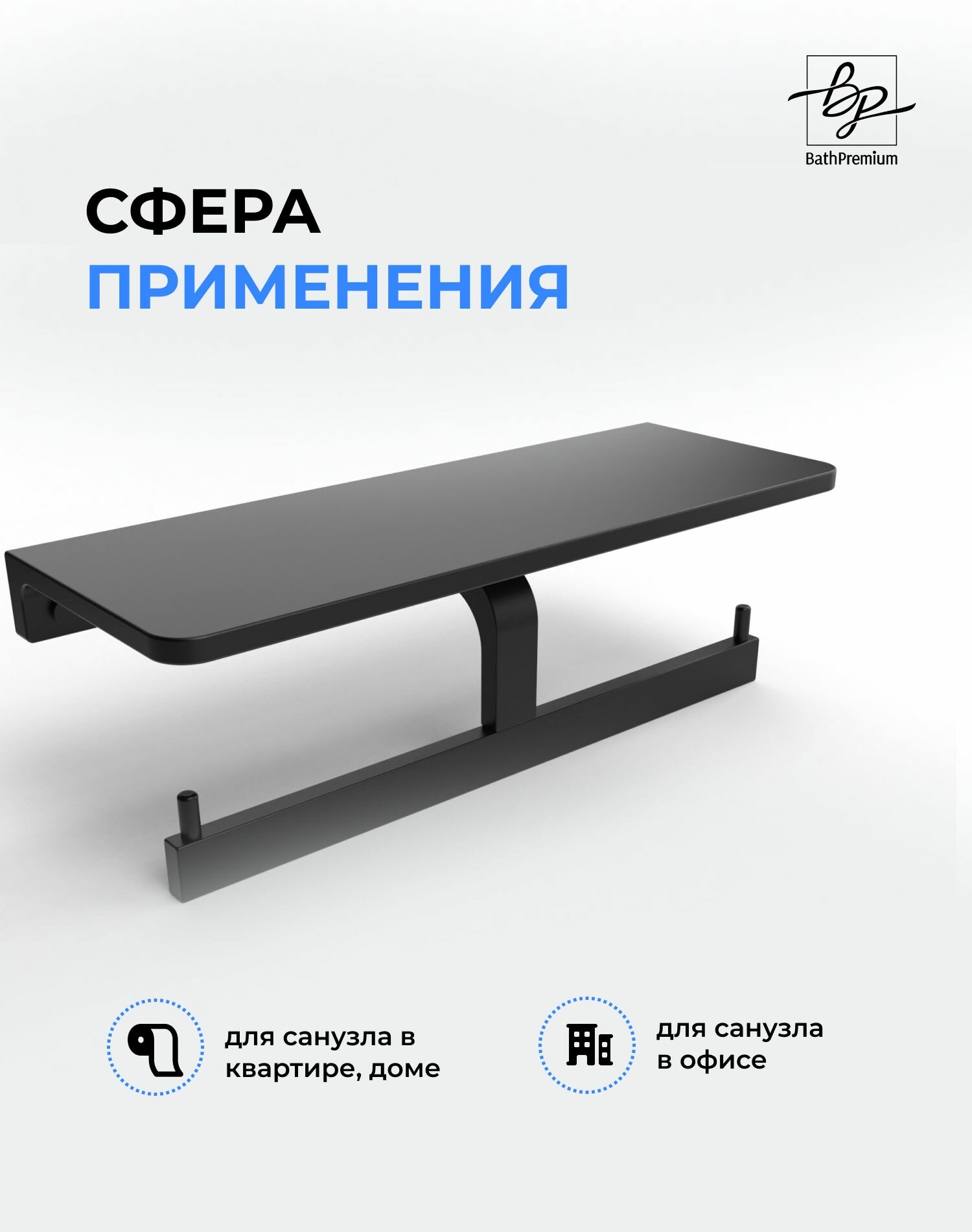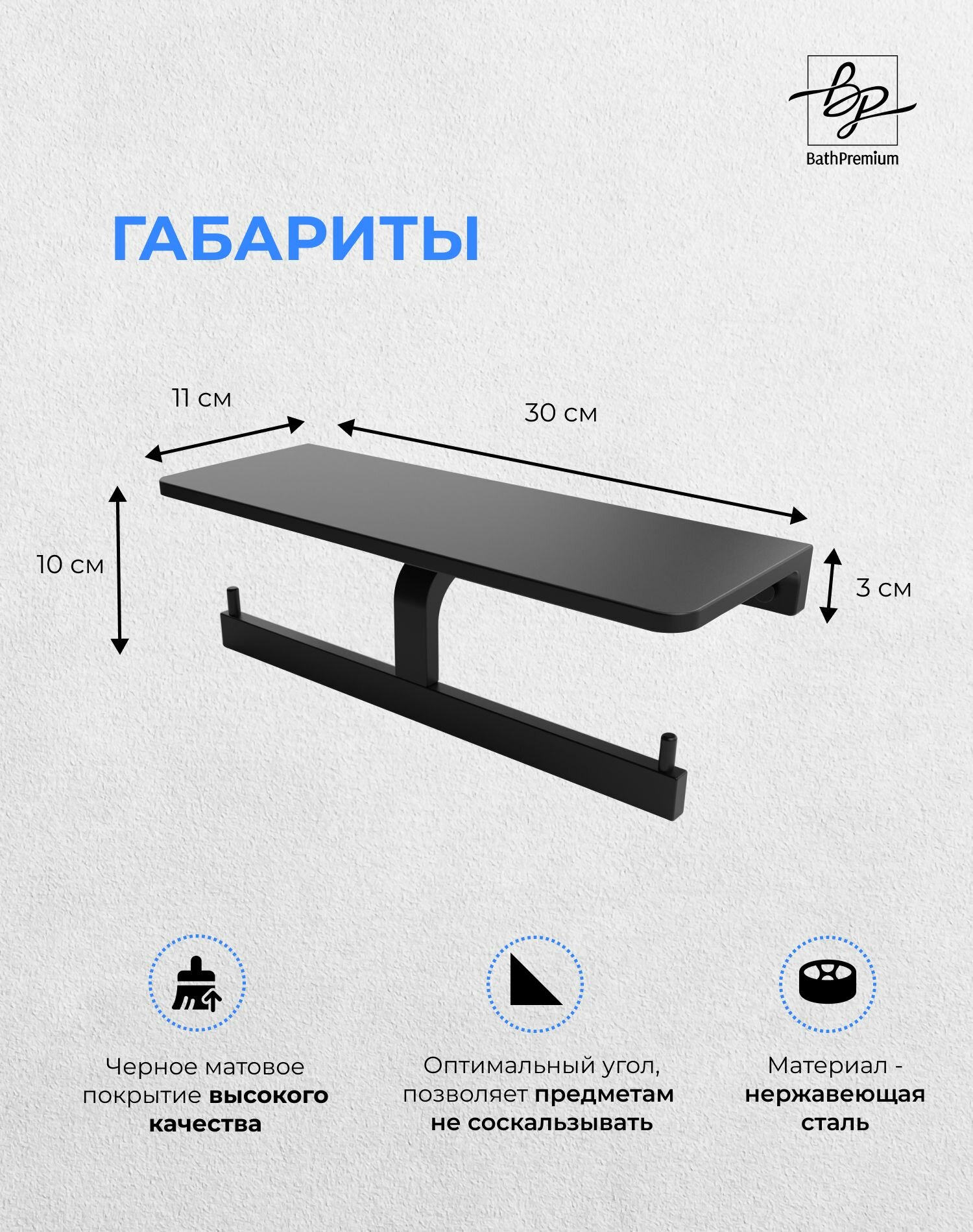 Купить Держатель для туалетной бумаги Brion с полочкой из нержавеющей стали черный матовый с доставкой по всей России.