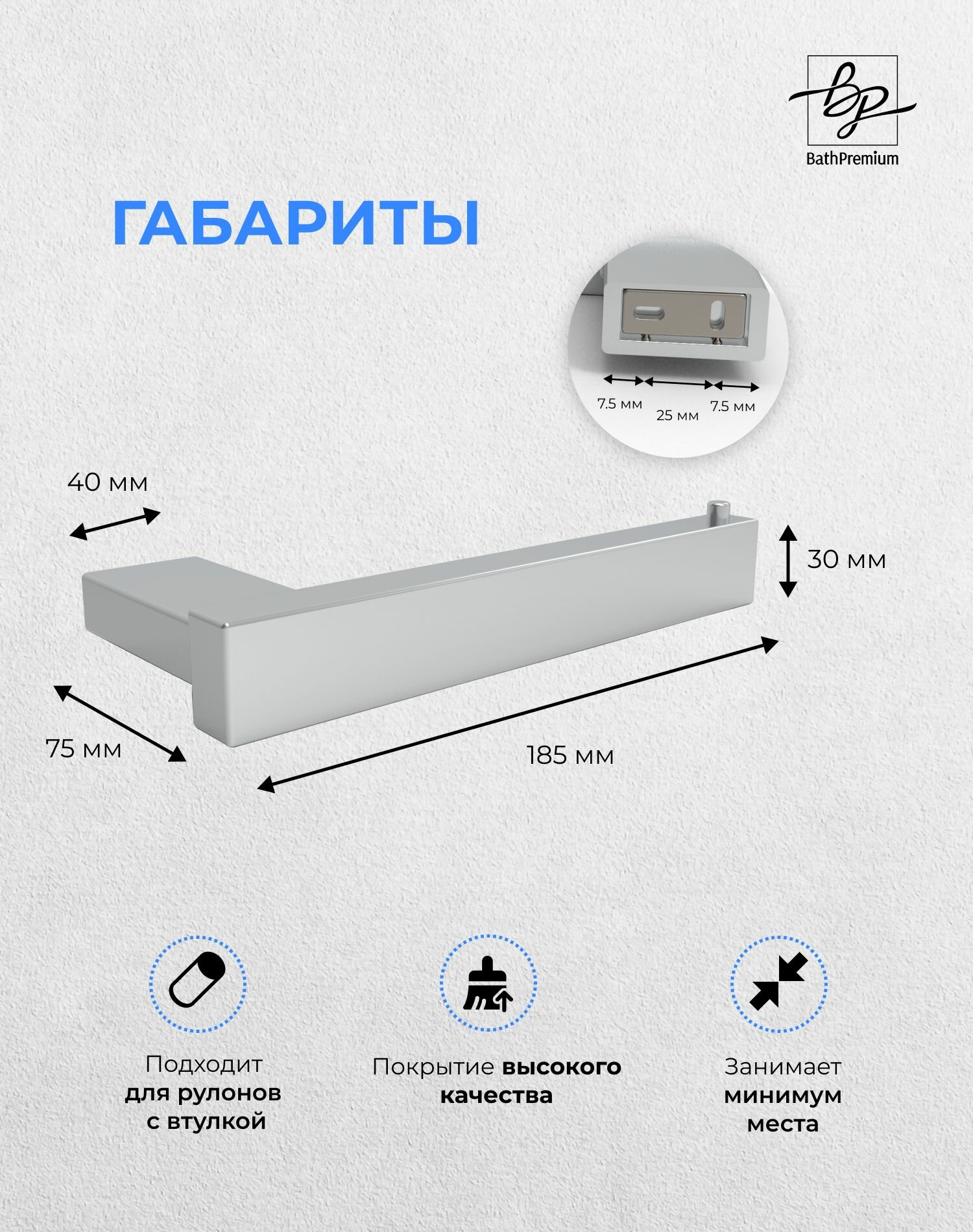 Настенный держатель для туалетной бумаги в хромированном цвете от бренда BathPremium премиум класса.