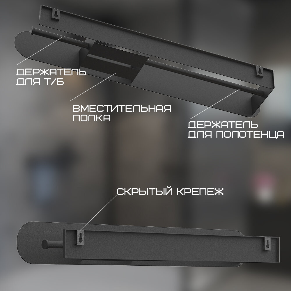 Полотенцедержатель с полкой в ванную не занимает много места и не мешает даже в стесненных условиях.