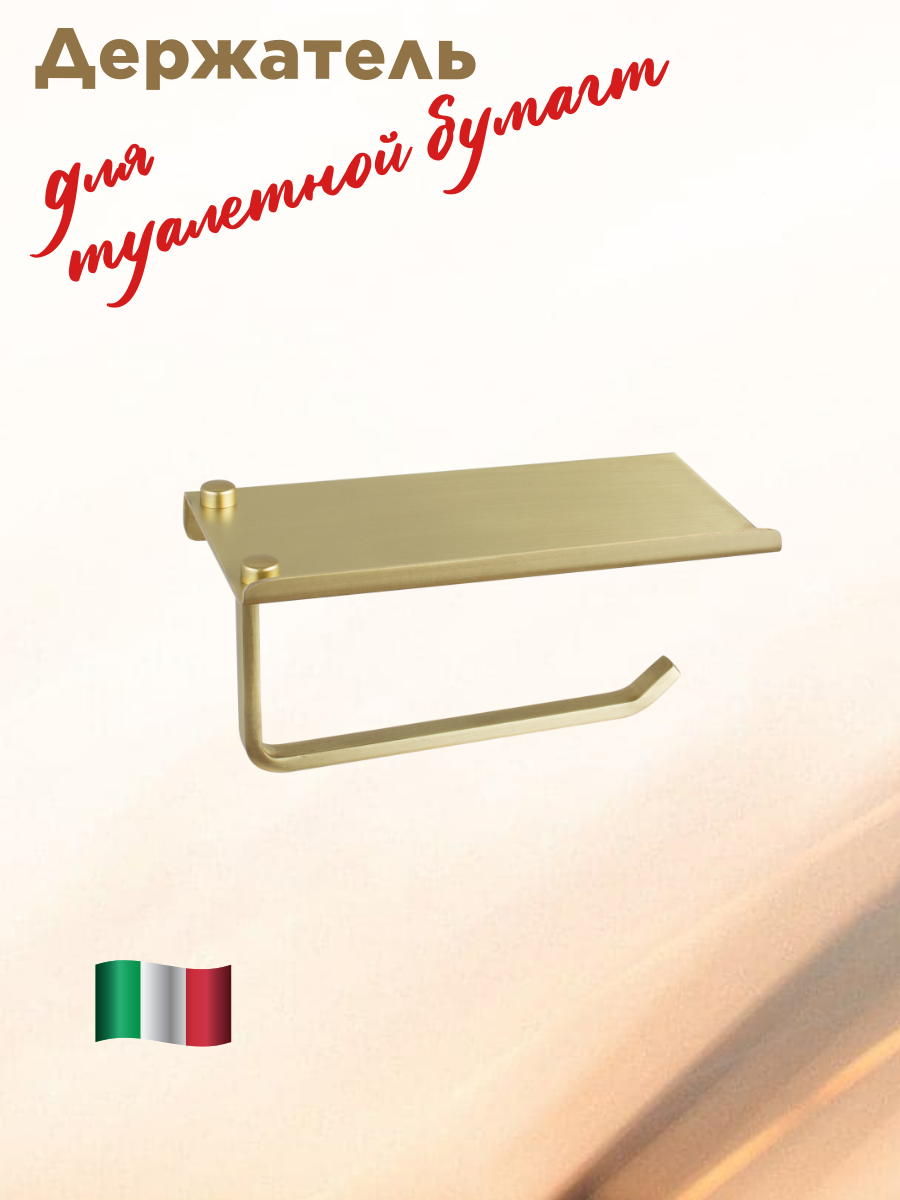 Купить Держатель для туалетной бумаги с полочкой Vivi Felice, латунь, матовое золото с доставкой по всей России.