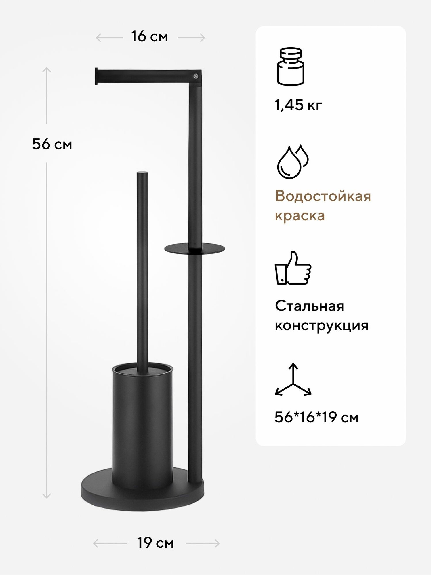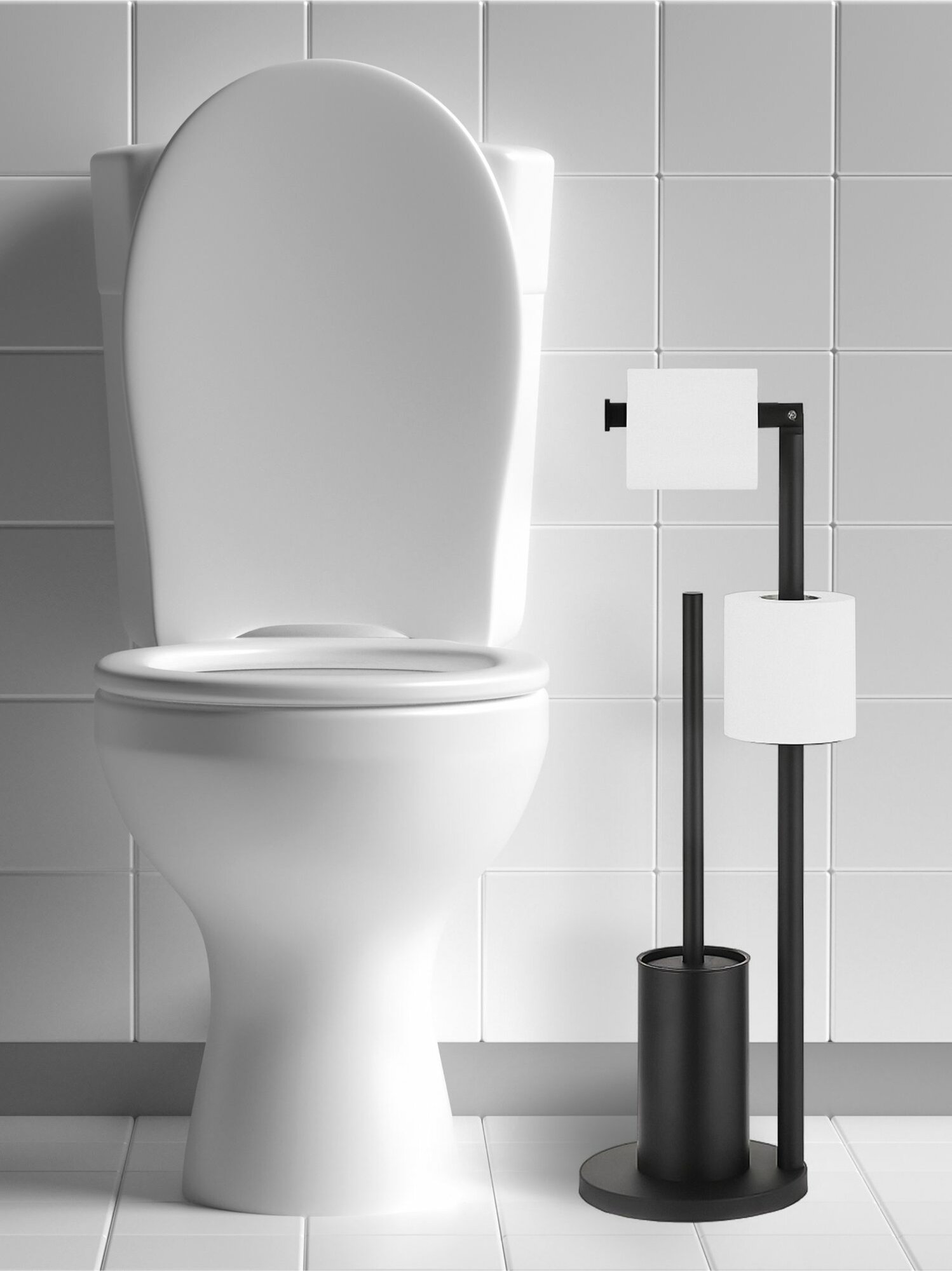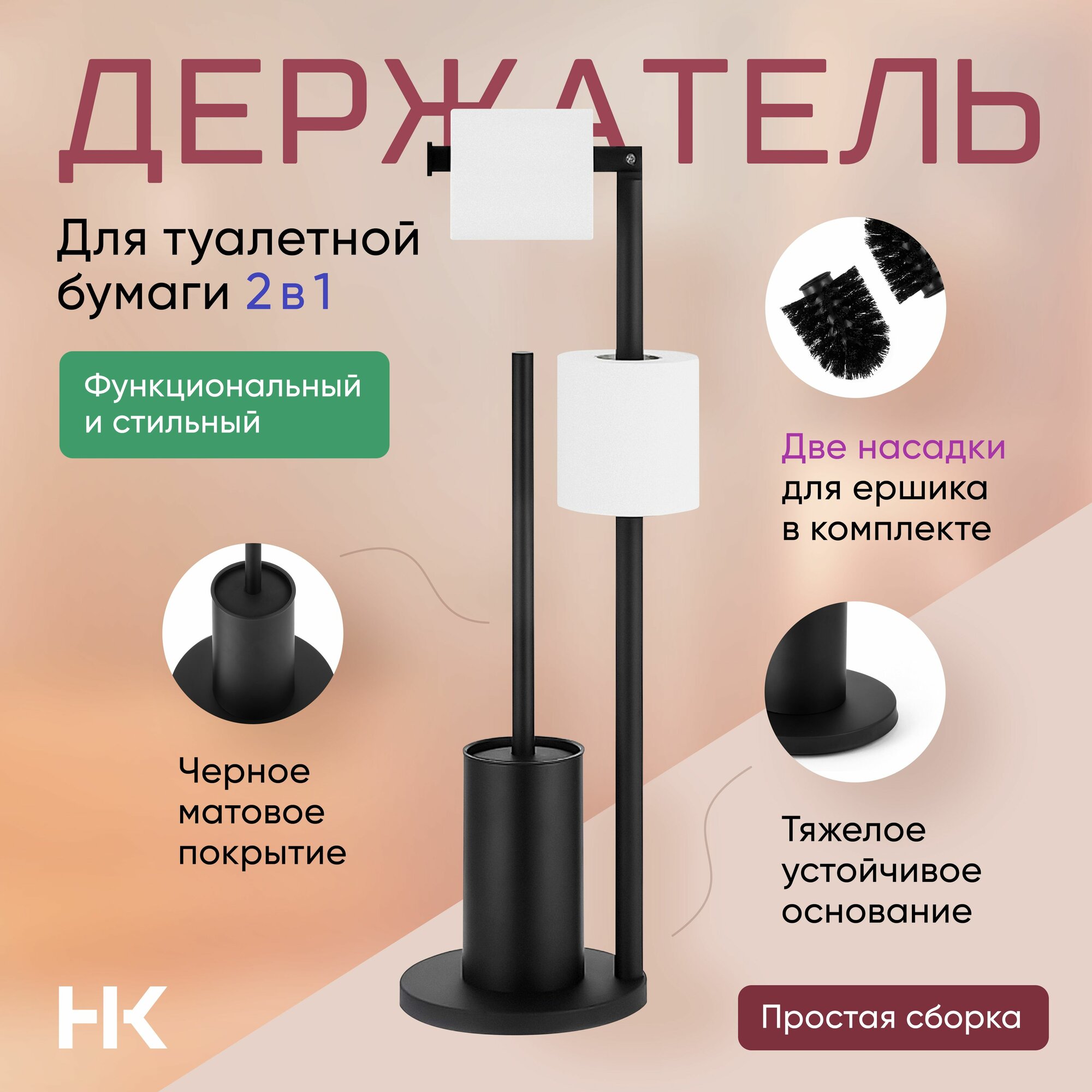 Напольный держатель для туалетной бумаги на два рулона с ёршиком Housekult 2 в 1 — это идеальное решение для современной ванной комнаты. Больше не нужно покупать аксессуары отдельно и придумывать как их сочетать.