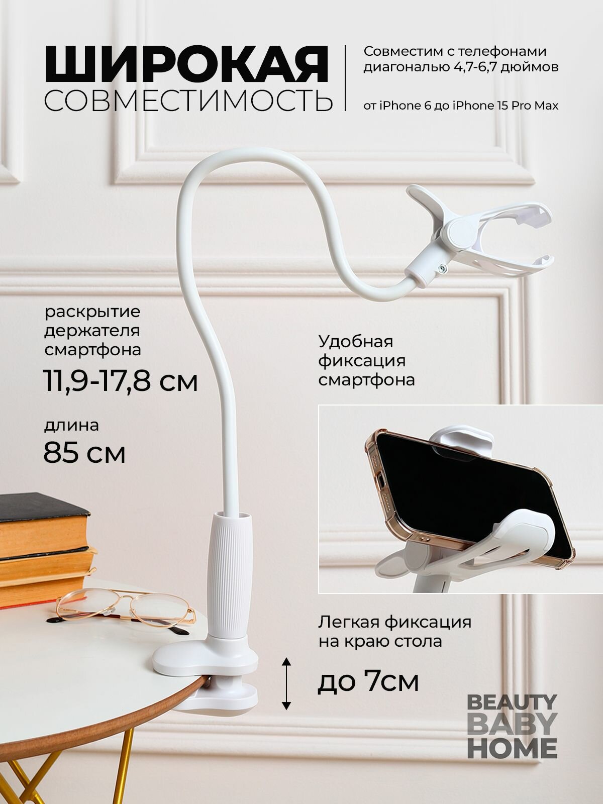Держатель гибкий для телефона белый/Универсальное крепление для мобильного устройства: сравнение цен, характеристики, фото, актуальное наличие и цены.