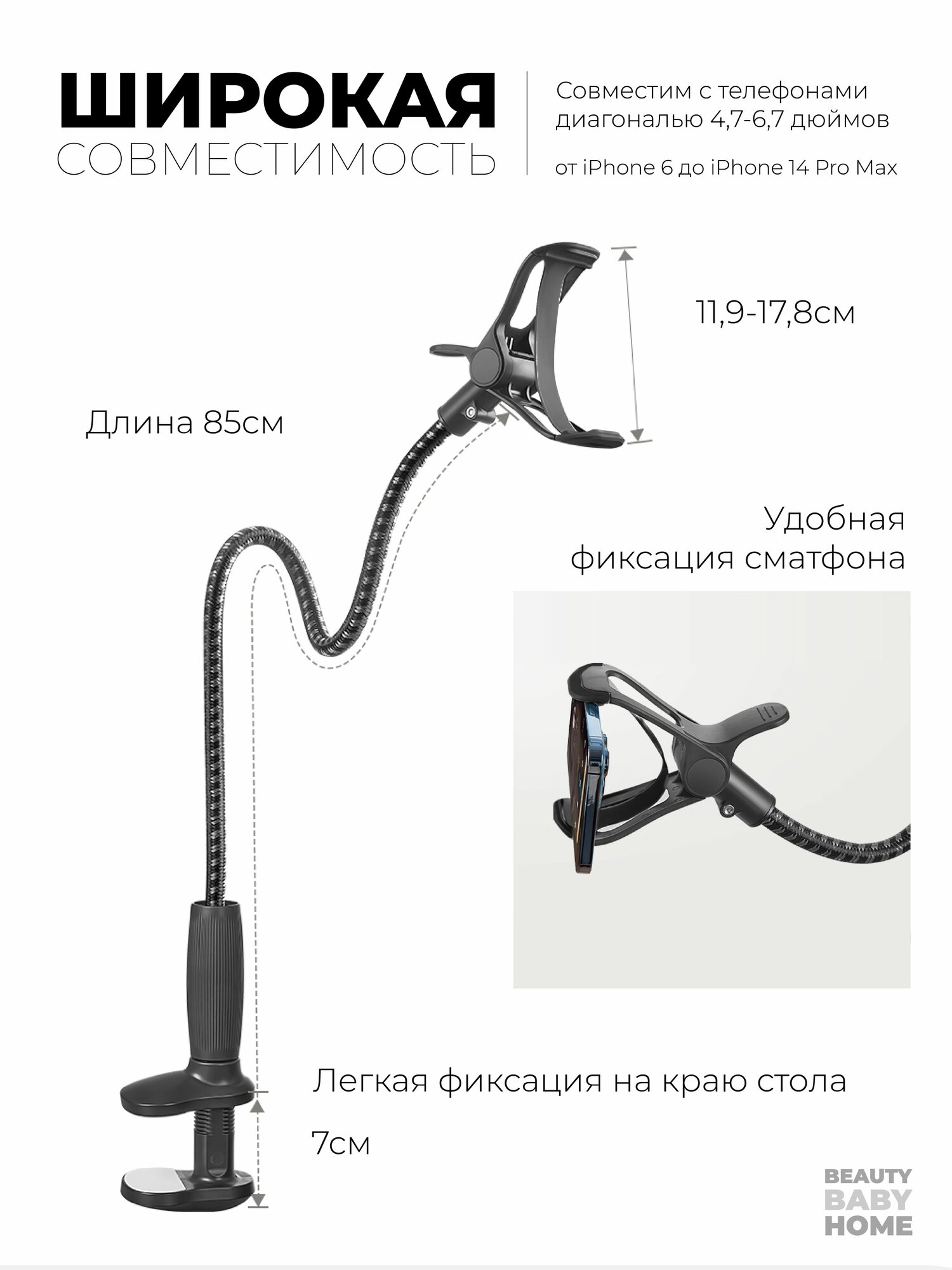Держатель гибкий для телефона чёрный нейлоновый/Универсальное крепление для мобильного устройства: сравнение цен, характеристики, фото, актуальное наличие и цены.
