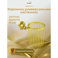Корзинка универсальная настенная VR. GIL-6453. DO серии GIALETTA - это действительно универсальный и полезный аксессуар для ванной комнаты или сауны. Вы можете использовать данную корзинку для хранения фена, журналов, или даже поставить туда шампанское или другие напитки. Материал: латунь. Гальваническое покрытие с использованием золота 24 карата с защитным прозрачным покрытием лаком сверху.