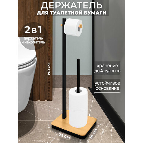 Напольный держатель для туалетной бумаги ELCASA 22х18х67,5 см чёрного цвета выполнен из металла с пудровым покрытием. Имеет прямоугольное основание и горизонтальный подвес для рулона, выполненные из натурального бамбука. Длина горизонтального бамбукового подвеса для рулона – 15,5 см, длина большой чёрной вертикальной трубы – 65 см, диаметр каждой металлической трубы – 2 см. Труба поменьше высотой 39 см выполняет функцию накопителя запасных рулонов туалетной бумаги, вмещает до 4 штук. Стильная подставка подойдет к любому интерьеру ванной или туалета, от минимализма до лофт. За счёт эргономичной формы вертикальному органайзеру найдется место даже в небольшой кабинке туалета. Высокая стойка из металла устойчива на полу и не требует дополнительных действий при установке. Просто поставьте её на пол в санузел рядом с унитазом без всякого сверления. Все необходимые предметы гигиены будут под рукой! Металлический бумагодержатель станет незаменимым помощником для создания комфорта в вашем доме. Не рекомендуется применять абразивные моющие средства. Поставляется в красочной картонной коробке. В коллекции бренда ELCASA представлено много функциональных товаров и стильных аксессуаров для вашего дома, которые позволят создать уют в любом пространстве.