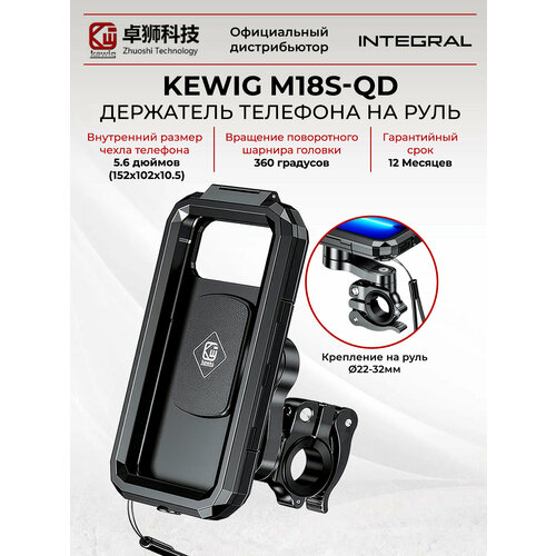 Держатель телефона Kewig M18S-QD - это универсальный держатель на руль мотоцикла, велосипеда, скутера, самоката, квадроцикла, снегохода. Предназначен для телефонов с диагональю экрана 3.5 - 6.1 дюйма