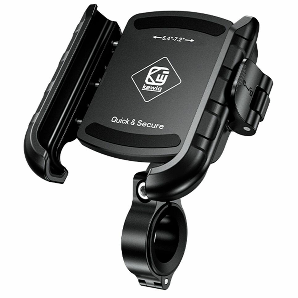 Держатель телефона Kewig M8SP-J - скреплением под руль KWG-R3 . Kewig M8SP-J — это антивибрационный держатель на руль мотоцикла, велосипеда, скутера, самоката, квадроцикла, снегохода. Подходит для телефонов с диагональю экрана 3.5 - 7 дюймов. Особенностью держателя является фиксирующий замок, который плотно фиксирует мобильное устройство в держатели и антивибрационное крепление. Расстояние между тисками от 64 до 89 мм позволяет устанавливать в держатель даже большие смартфоны. Основные компоненты держателя, изготовлены из легкого, но прочного алюминия, а винты и направляющие-из стали, пластик ABS. Поворотный шарнир головки вращается на 360 градусов и позволяет установить телефон в удобном положении. Держатель можно закрепить практически на любой руль диаметром от 22 до 32 мм. Технические характеристики: Модель: M8SP. Материал: PA66 + GF + Алюминий. Корпус: фиксирующий замок. Ширина зажимов: 64 - 90 мм. Максимальные размеры телефона: 89 x 179 x 19 мм. Способа крепления: на руль, в месте крепления зеркала под винт. Диаметр руля: 22 - 32 мм