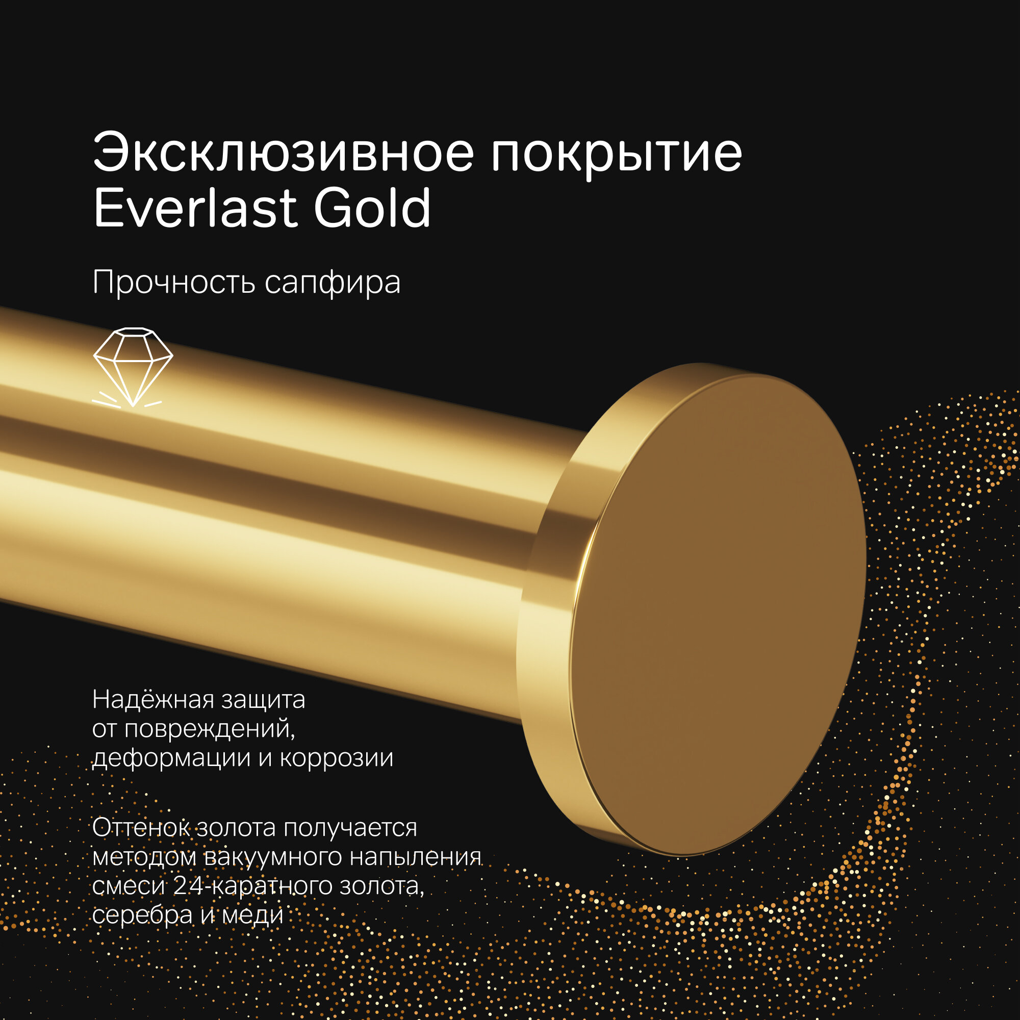 Настоящее произведение ювелирного искусства в вашей ванной комнате: корпус равномерно покрыт тончайшим слоем 24-каратного золота. Нанесение драгоценного финишного слоя выполнено методом вакуумного напыления, в процессе которого микрочастицы золота образуют стойкое соединений с металлической основой.